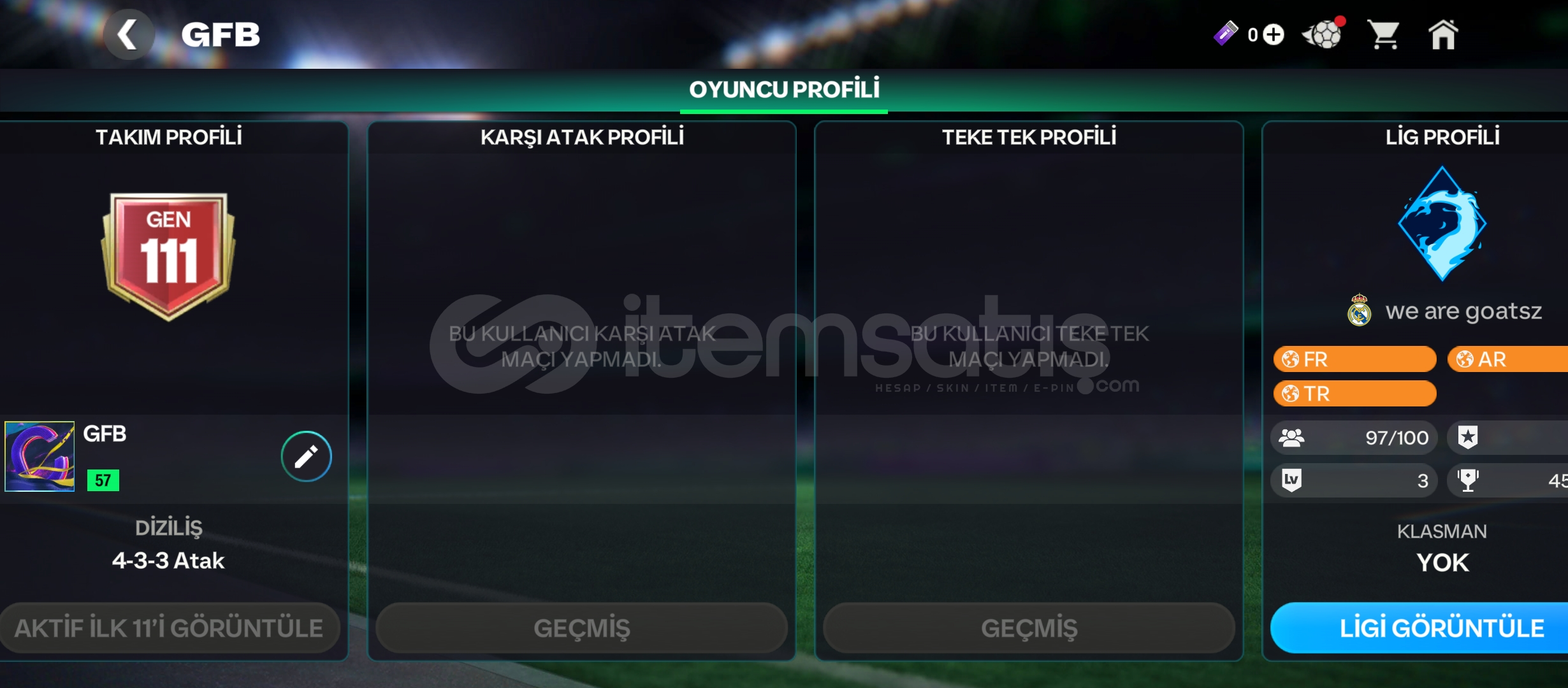 Bir çok animasyonlu avatar (31) emojiler (20) , formalar (35)Hesap 57 lvl dır.111 GEN ilk 11 Kadrosu vardı.Emek hesabımdır.Alana şimdiden hayırlı olsun.
