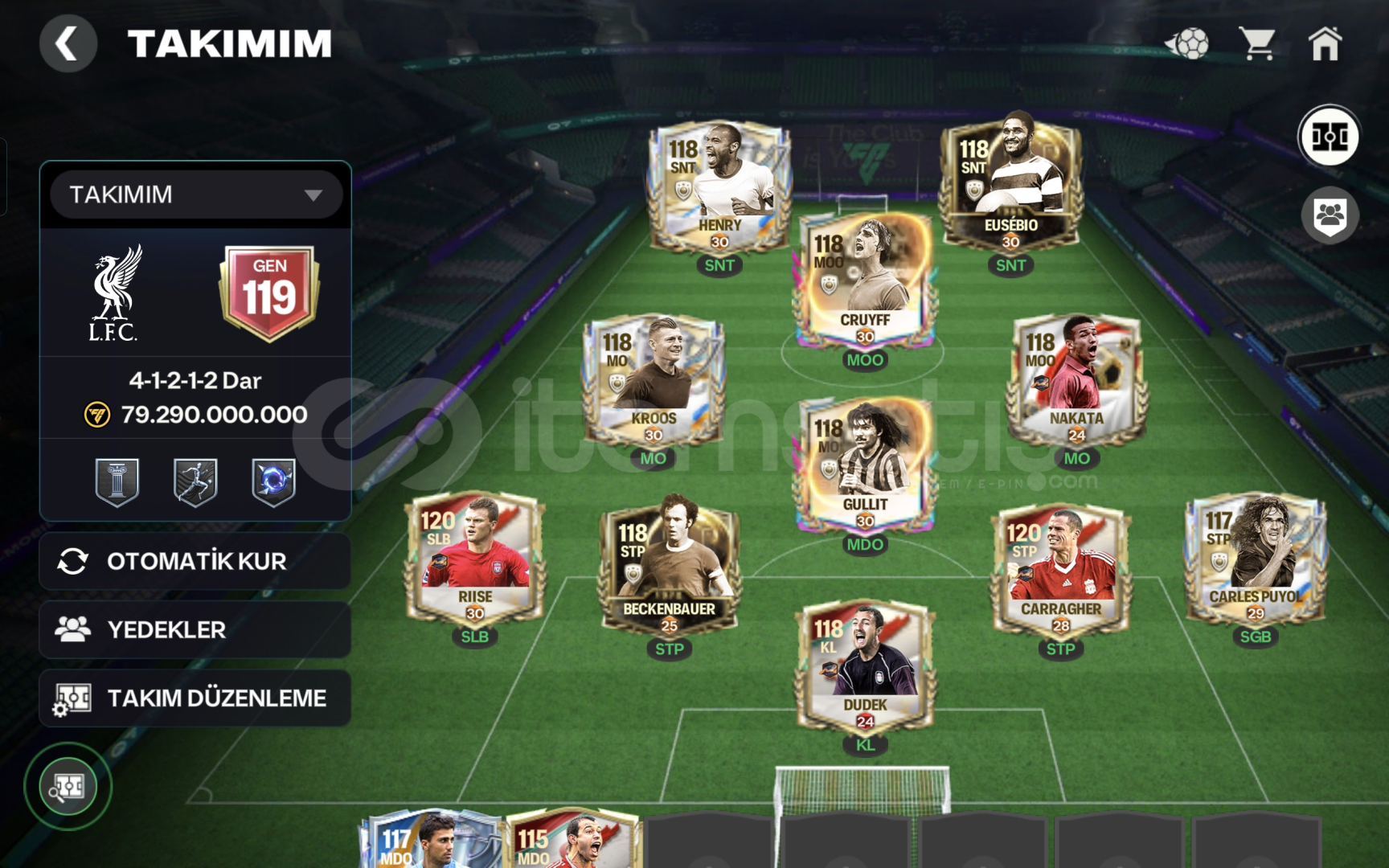 Hesabımda tüm etkinliklere katılım sağladı çok rahat sekilde 121 gen olabiliyor defansta puyol yerine 118 gen koyuldugu an 121 gen ayrica aktif olarak 2 adet 119 2 adet 120 gen oyunun en pahalı oyunculari var 4500 milyonluk henry satılabilir durumda yeni sezon olmasina ragmen 3 klasmandada şampiyon , hesaba 50 60 bin harcandı kadro en ince detayına kadar bilinçli yapıldı yeni arma seviye 3 olmak üzere oyunda akti...