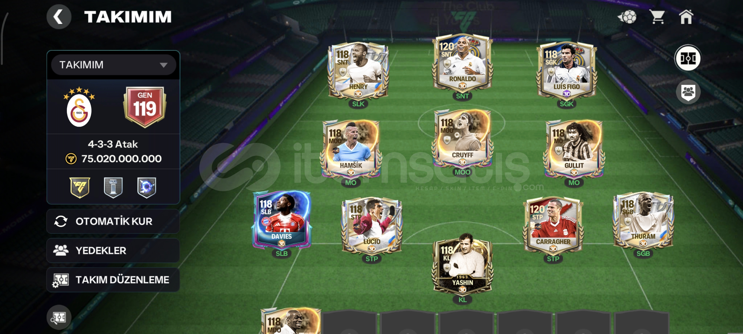 119 GEN FC ŞAMPİYON HESABI HESAP SOL BEK HARİC FULL İCON OYUNCULARDAN OLUSUYOR.
