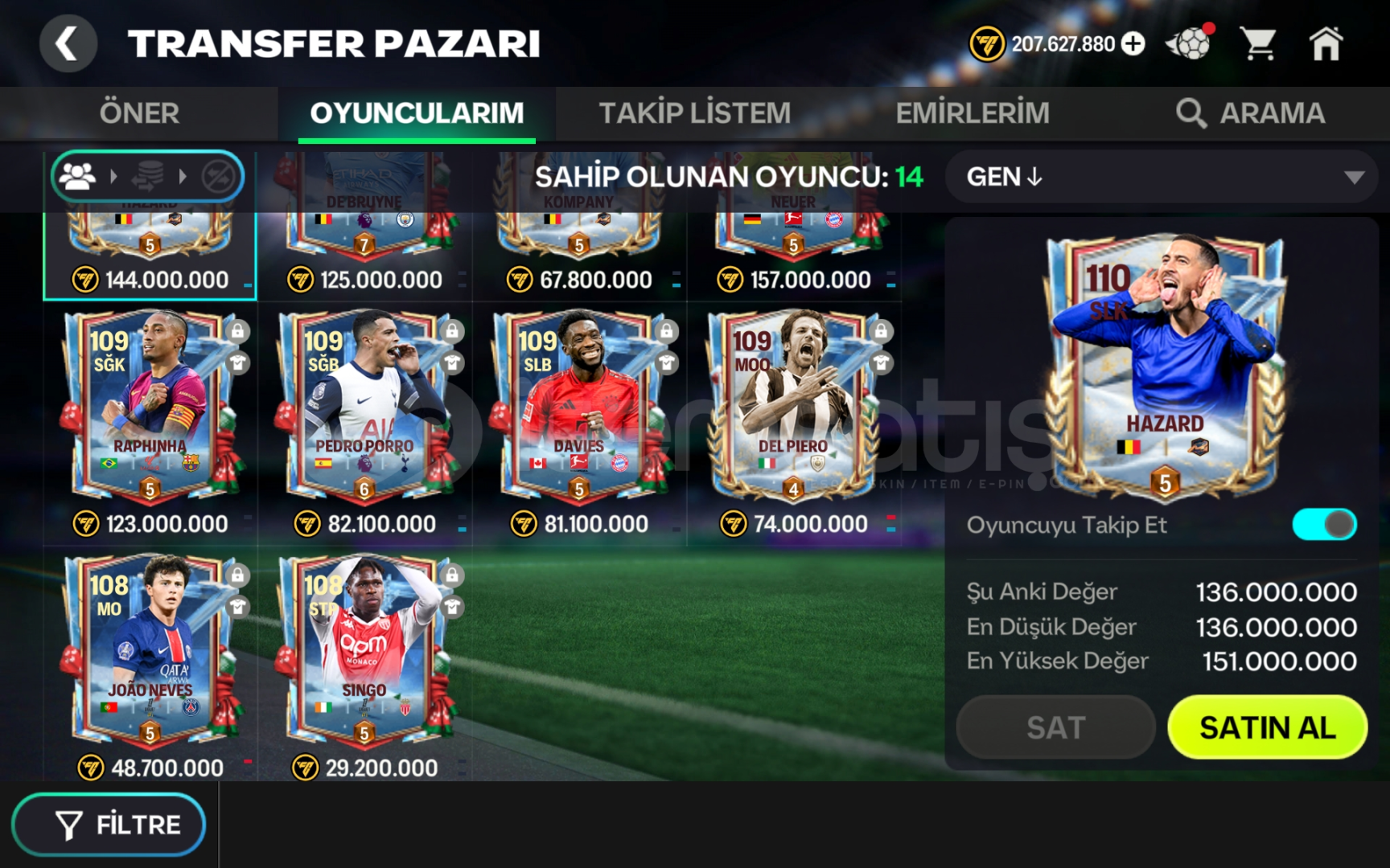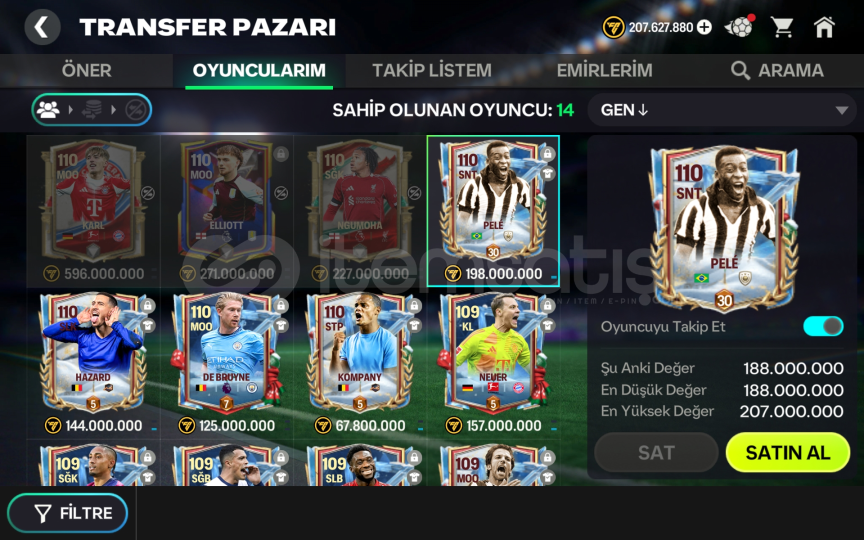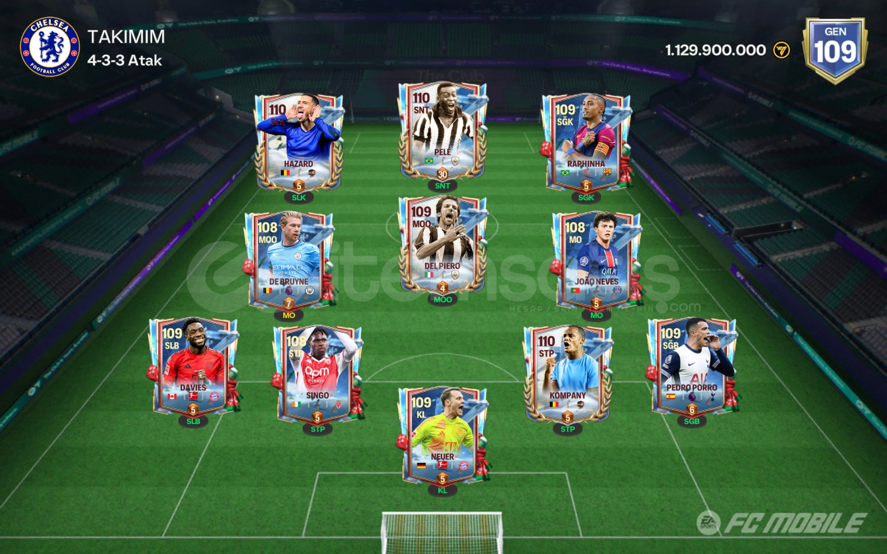 ​🏆 Efsanevi Kadro : Piyasanın özel etkinlik kartlarından oluşan yetenekli ve güçlü oyuncularla kurulu, size her maçta üstünlük sağlayacak, her pozisyonda dengeli bir kadro.