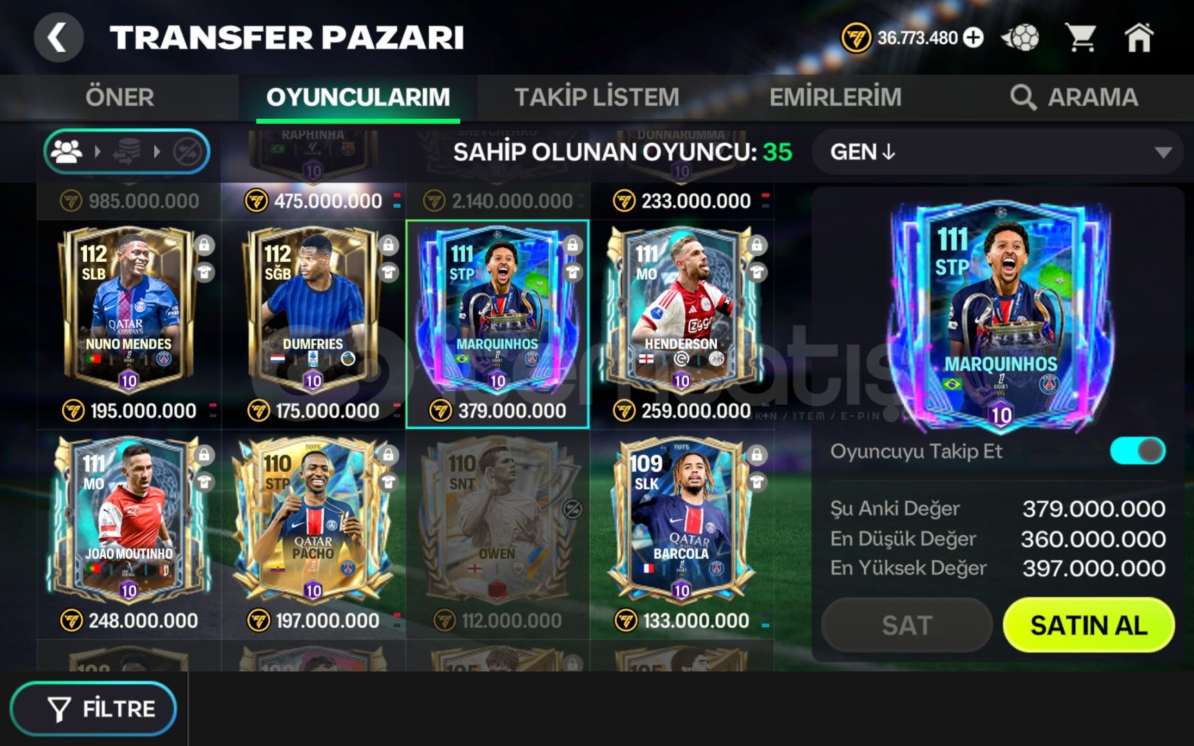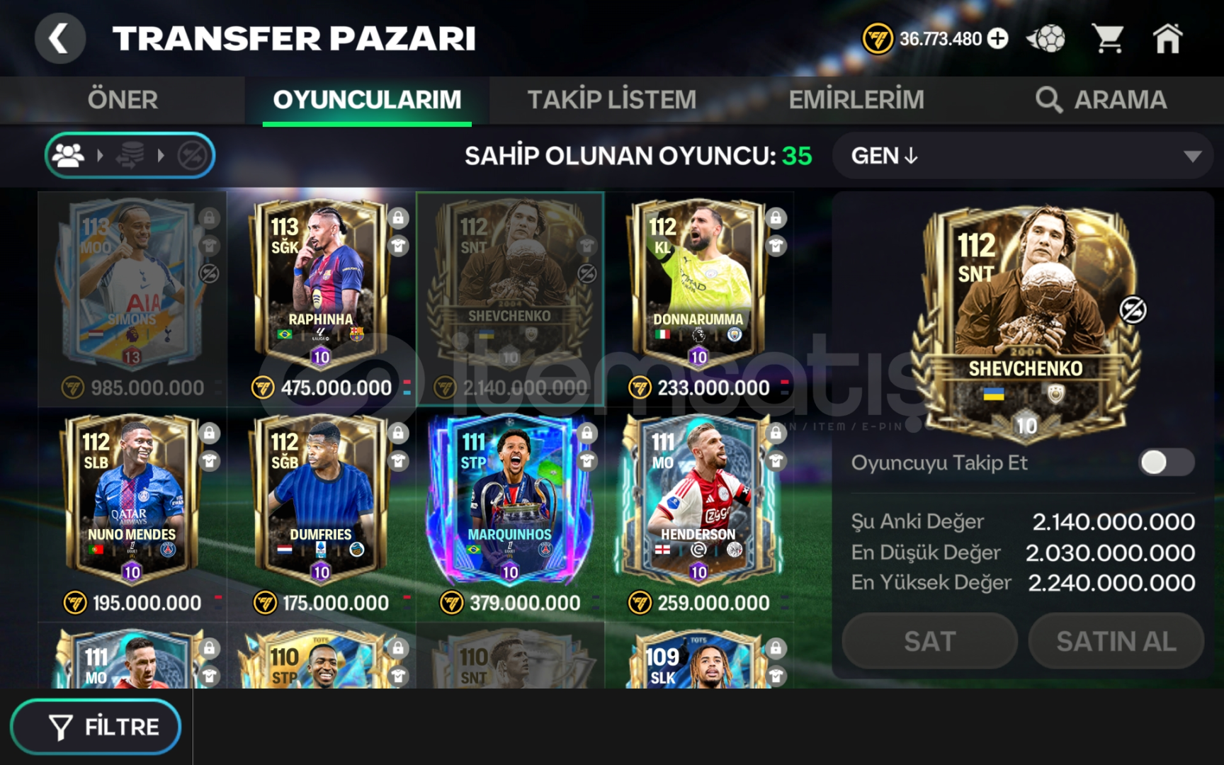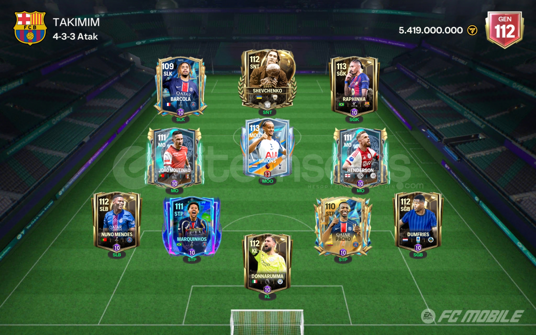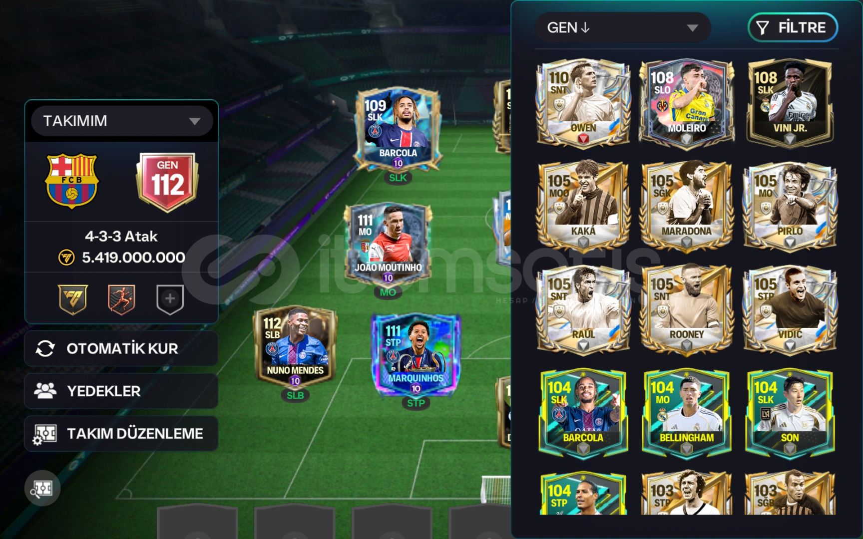 • Hesap, sadece efsanevi oyunculardan ibaret değil. Yüksek miktarda coins ile anlık transfer ve geliştirme özgürlüğüne sahipsiniz.​
