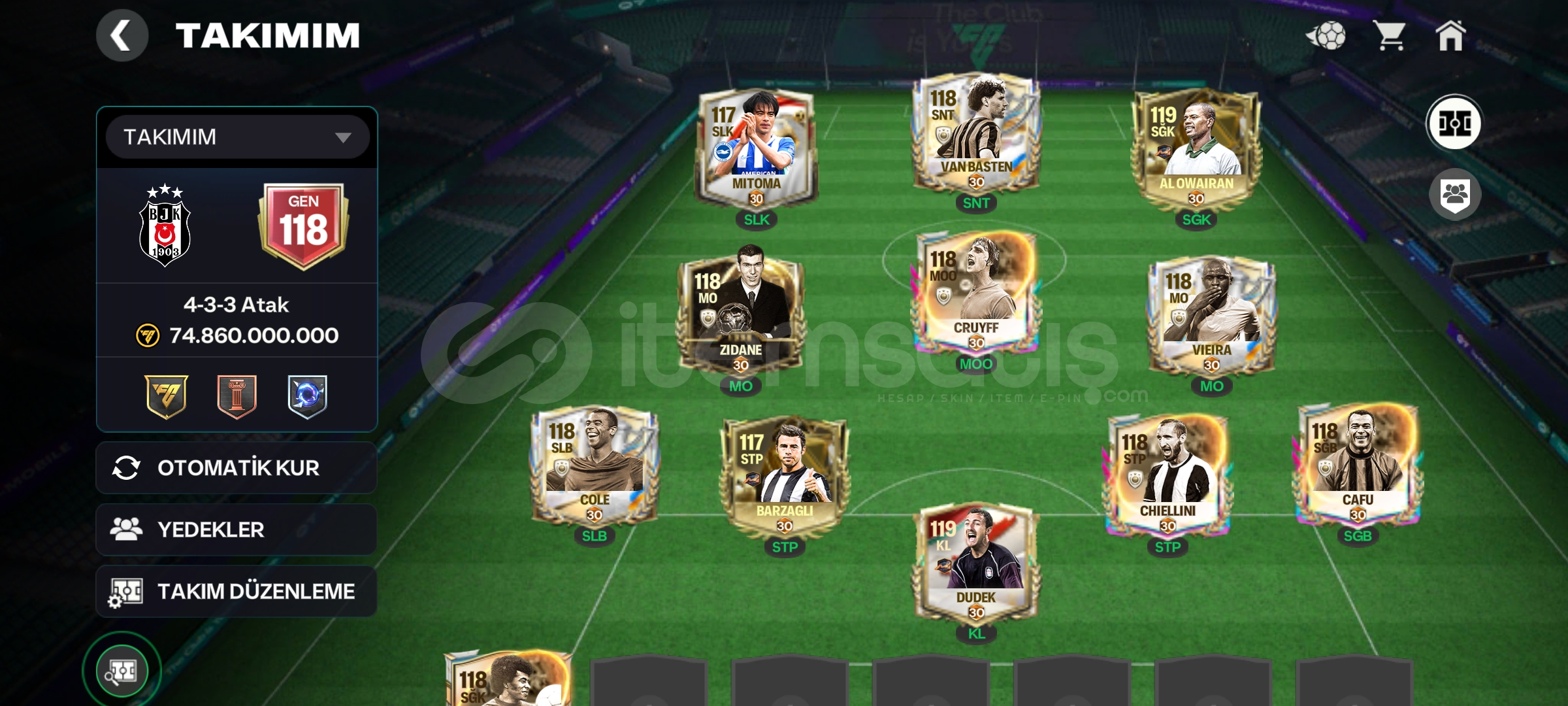 Hesap full 119 gen olmasına 1 oyuncu var . 800 parca var.Pazarlik yoktur. Fiyat çok uygun yazıldı