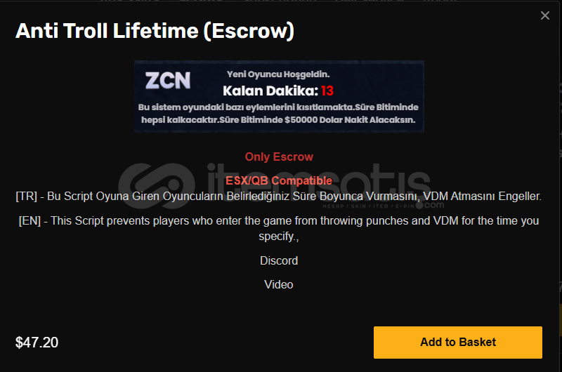4.11. : ALICI teslim aldığı hesap, karakter, item, yang ve bununla sınırlı kalmayacak şekilde SATICI tarafından teslim edilen ürünü kontrol etmeden onaylamayacağını peşinen kabul eder. Kontrol edilmeden alınan SATICI ürünlerinden doğabilecek hak kayıplarından İTEMSATIŞ sorumlu tutulamaz.