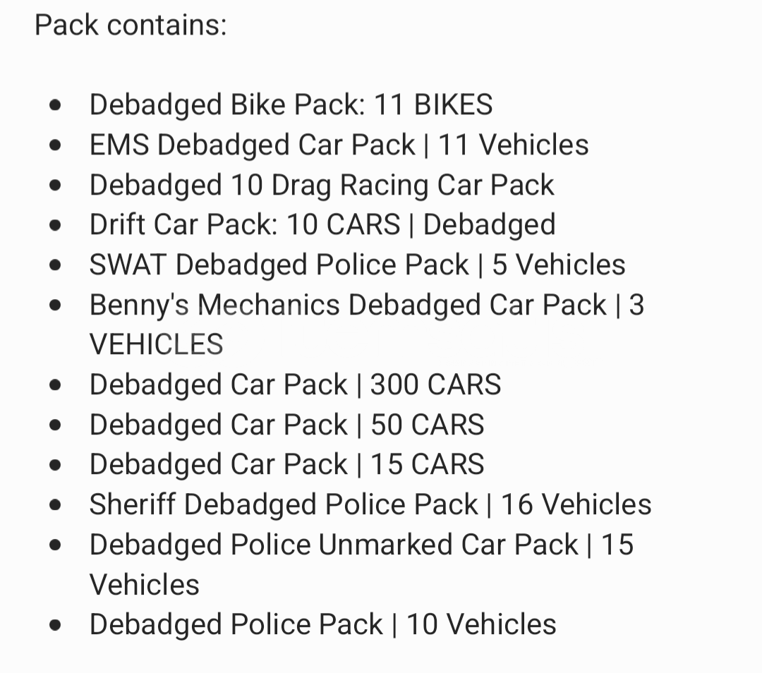 Debadged Vehicle Pack (+450)