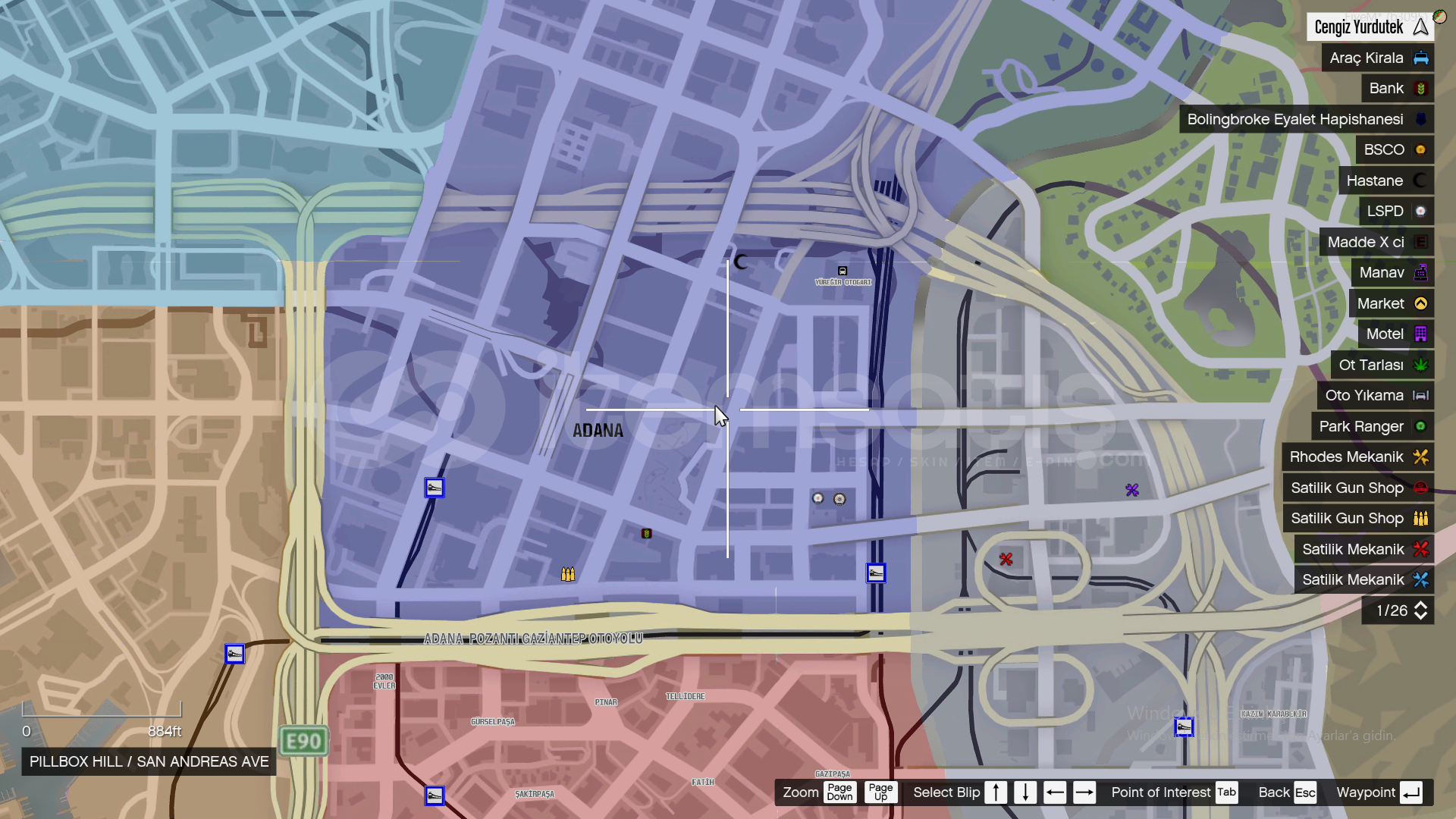 Fivem Adana yani Türk Temalı Roleplay sunucuları için Adana Haritası.