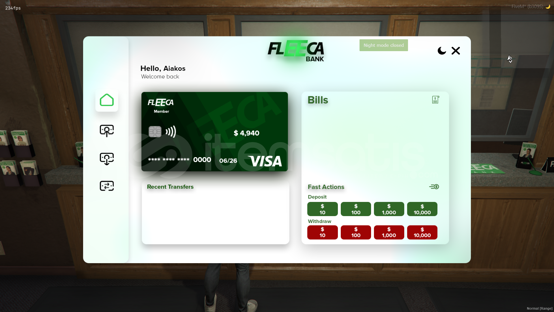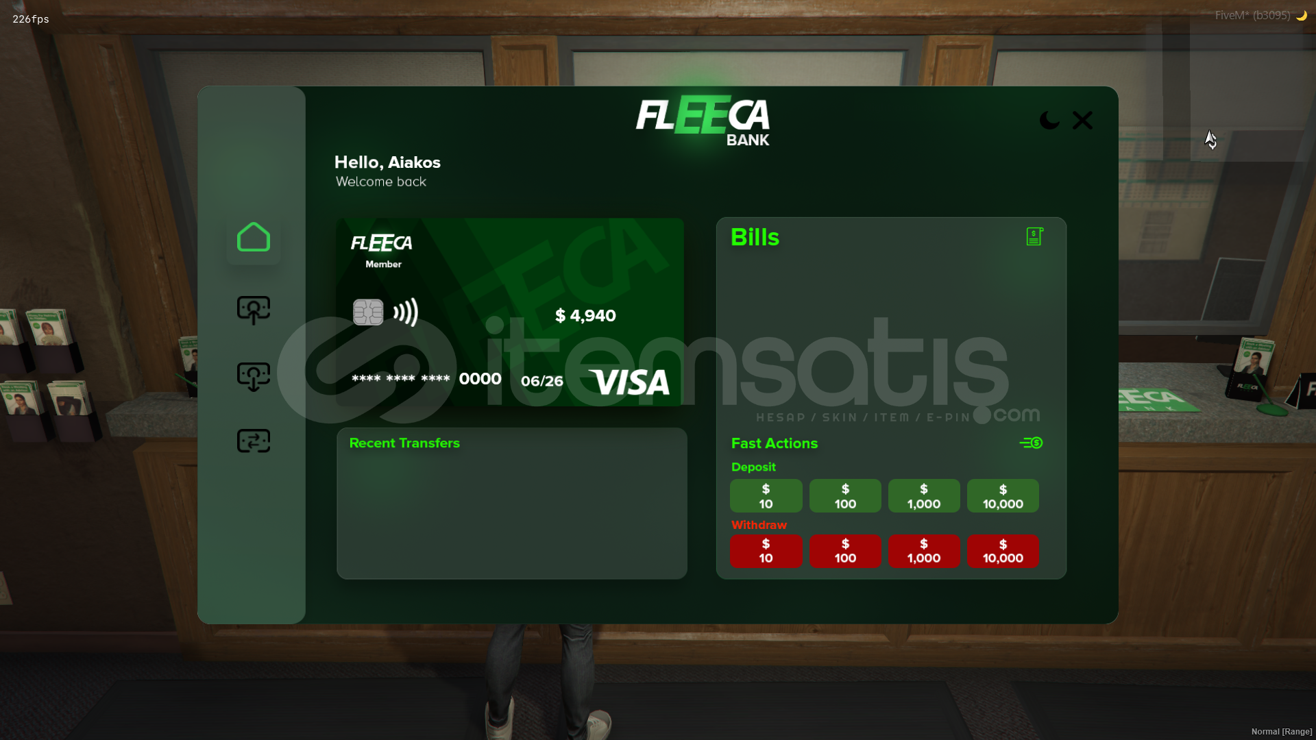 💼 FLEECA Finans Arayüzü – Sanal Dünyada Gerçek Kontrol!Oyun içi ekonominizi profesyonelce yönetin! FLEECA arayüzü, oyunculara dijital bir finans deneyimi sunarak işlemleri hızlı, güvenli ve sezgisel hale getiriyor.🔹 Özellikler:Kişiye özel dijital kart görünümüAnlık bakiye takibi ve işlem geçmişiHızlı işlem paneli ile tek tıkla yatı...