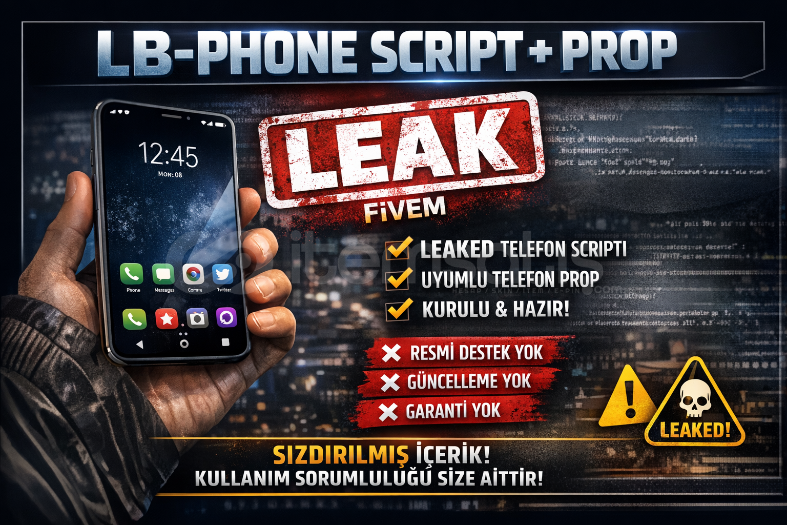 ⚠️ ÖNEMLİ BİLGİOrijinal yapımcıya ait destek, güncelleme veya garanti bulunmamaktadır.🔹 Öne Çıkan Özellikler📱 LB-Phone altyapısı ile uyumlu⚙️ Optimize edilmiş kod yapısı (düşük MS, yüksek performans)📱 Gerçekçi telefon prop’u (elde tutma animasyonlarıyla uyumlu)🎭 Roleplay odaklı tasarımԂ...