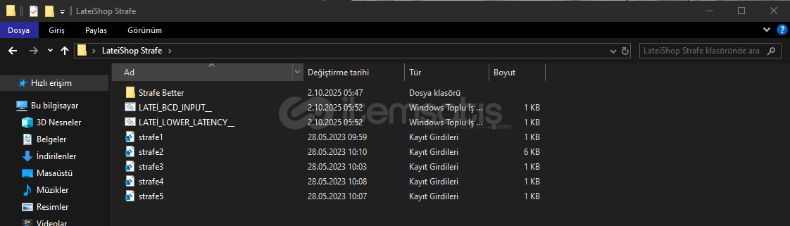 Strafe sadece regedit dosyası olarak teslim edilmemektedir. Yanında İnput lag düşürücü özel bat programı ile verilmektedir.