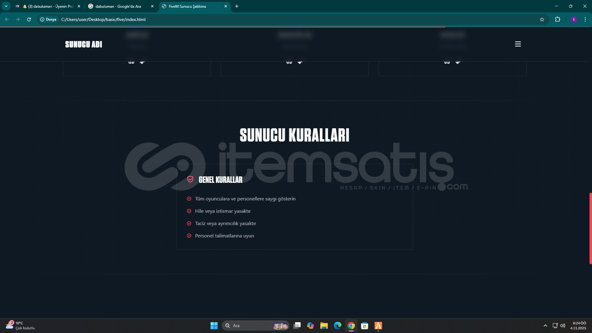 Fivem Serverınız için ÖZELLEŞTİRİLMİŞ WEB Sitesi: