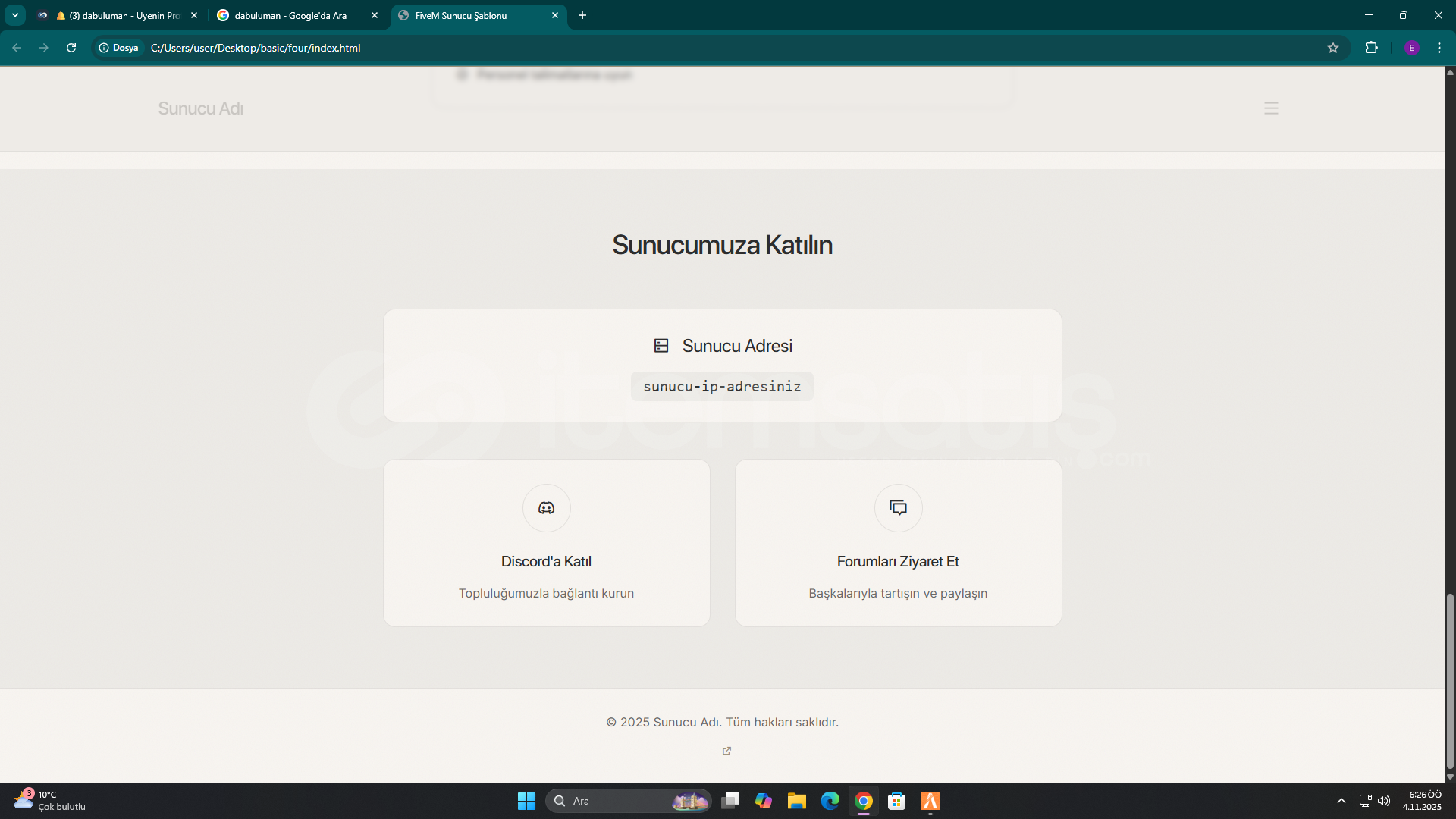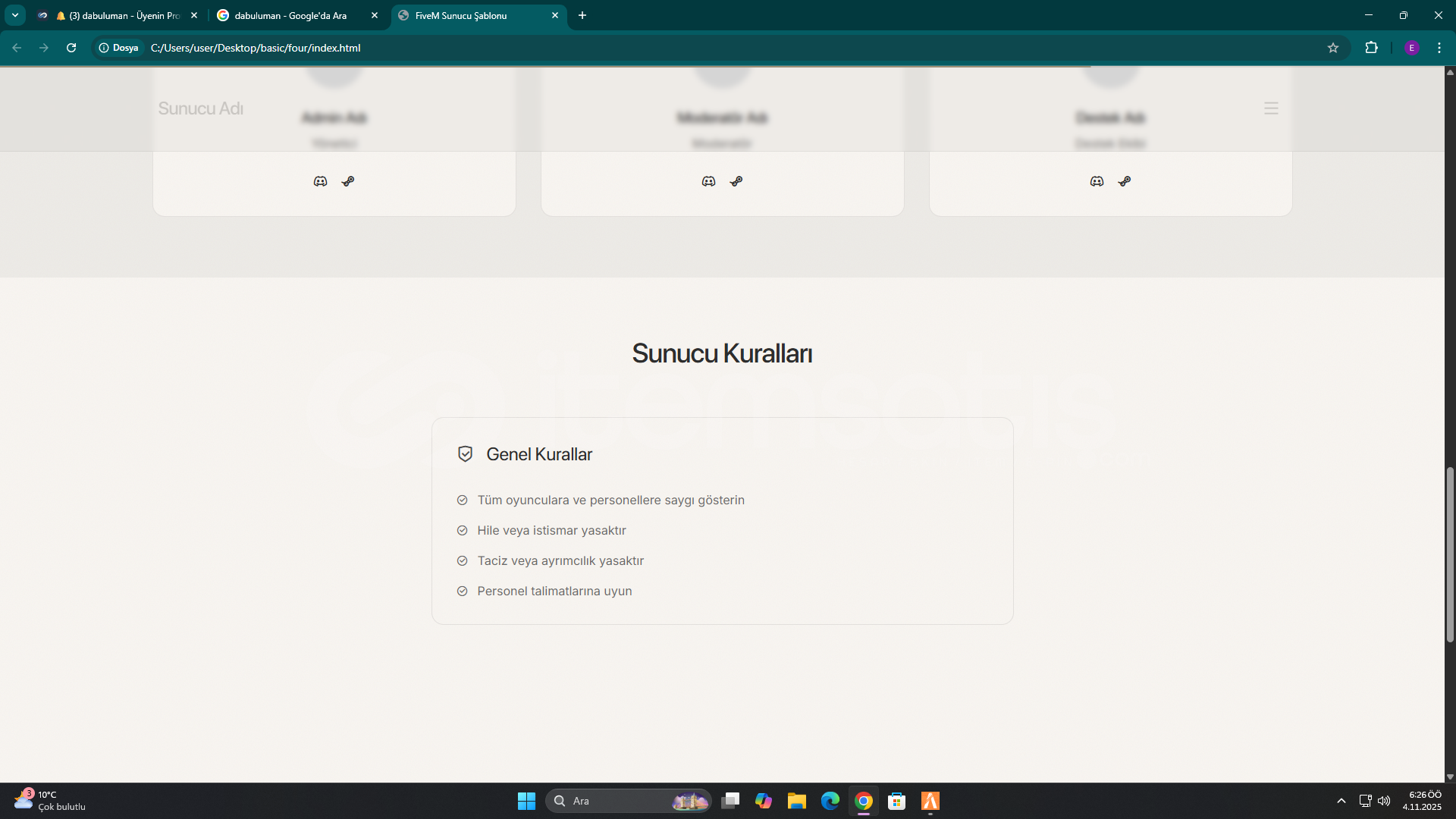 Fivem Serverınız için ÖZELLEŞTİRİLMİŞ WEB Sitesi: