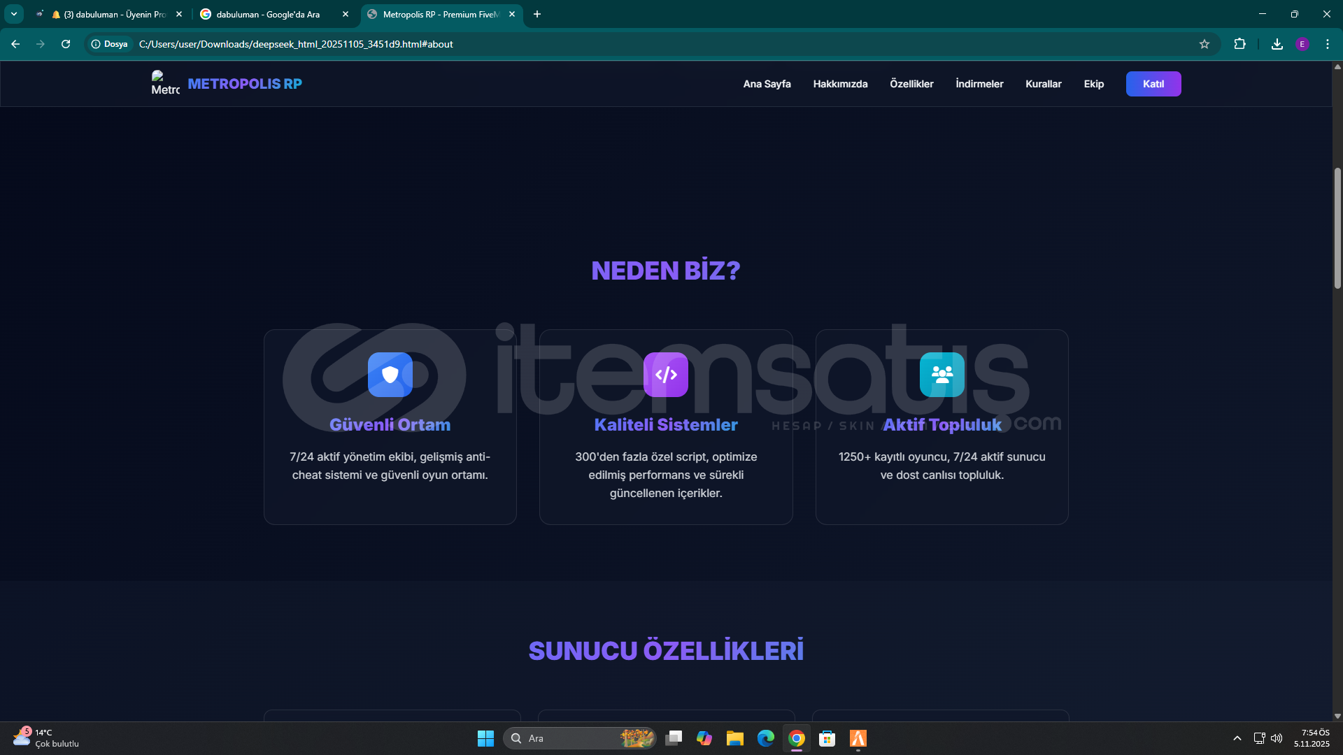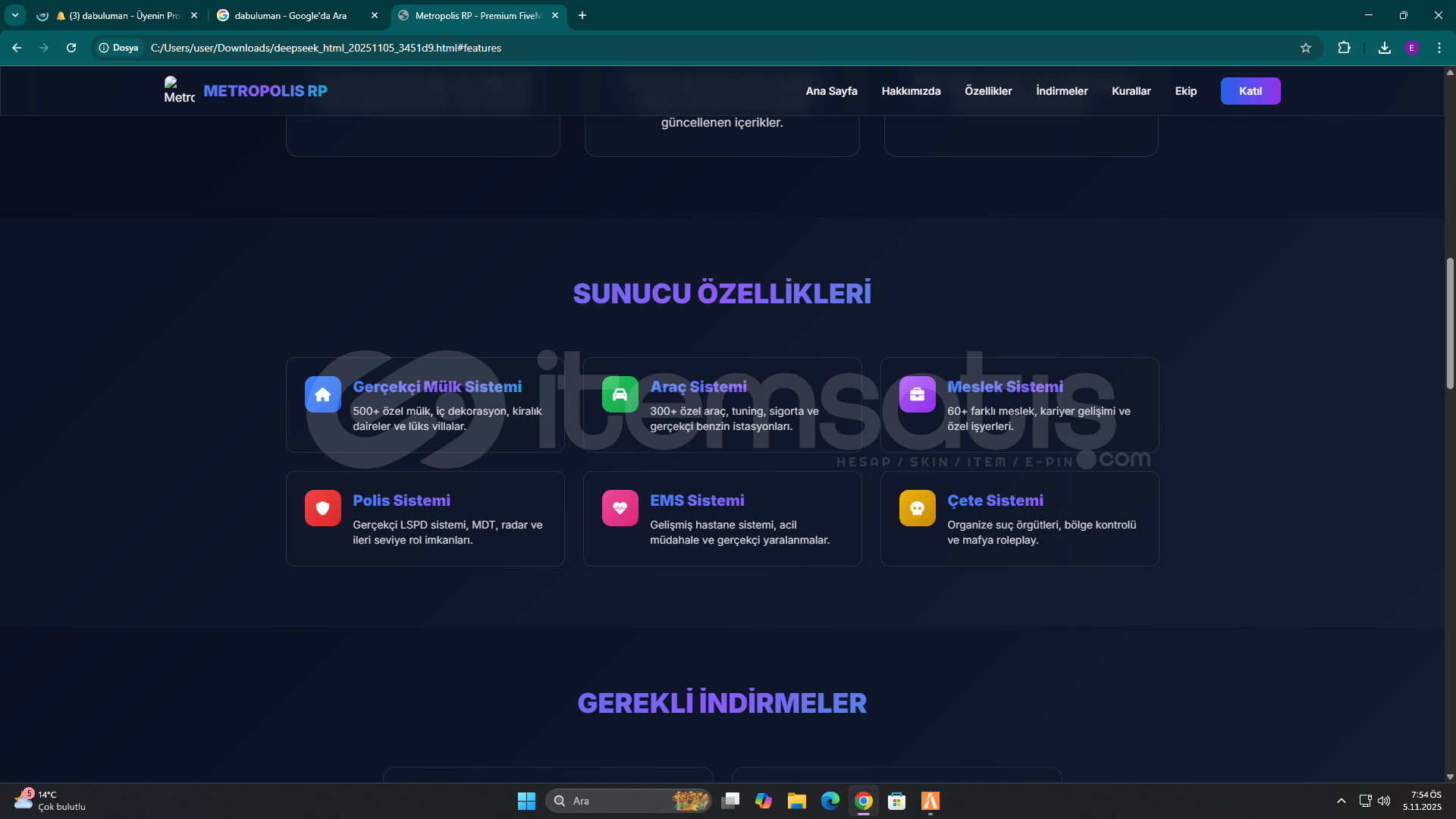 Fivem Serverınız için ÖZELLEŞTİRİLMİŞ WEB Sitesi:Göreseller özelleştirimemiştir aldıktan sonra serverınıza göre özelleştirilir.Satın alım işlemini gerçekleştirdikten sonra dm den yazmanız önemle rica olur :)Herhangibi bir sorunuz olursa dm üzerinden iletişime geçebiliriz :)
