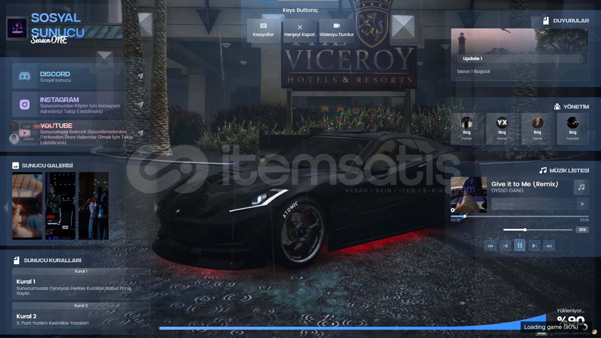 SUNUCU SOSYALDİR GUNRP İÇİNDE KULLANILABİLİRKURULUMU YAPAMAZSANIZ YAPARIZ.SUNUCU İÇİNDE IZZYHUDV5 OPEN SOURCE VARDIR. (ESCROWLU IZZYHUDV5 30 EURO)SUNUCU ICINDE UM MULTICHARACTER VARDIR. (30 EURO)SUNUCU ICINDE LIFETIME OPEN SOURCE LBPHONE VARDIR.(120 EURO)SUNUCU ICINDE BIRDEN FAZLA MESLEK VARDIR.ÖMÜRLÜK KULLANILABİLECEK BİR PAKETDİR.KURULUM AŞIRI BASİTTİR İNDİR ÇIKART SQL OKUT VE BAŞ...