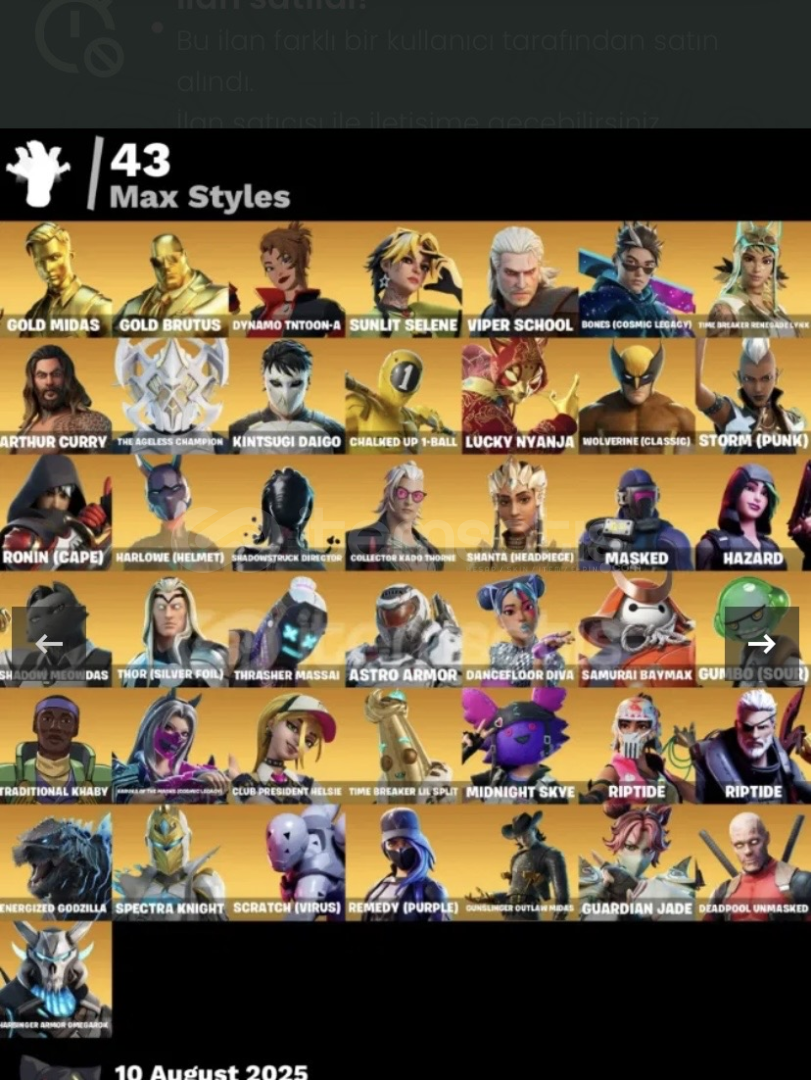 Fortnite hesap satışı kategorisinde random / mail değişmeyen hesapların satışını yapmak yasaktır. Tespiti halinde ilanınız kapatılır ve 2. tekrarda hesabınız tamamen kapatılır.