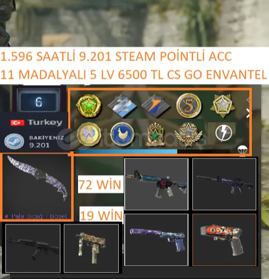 11 MADALYALI 5 LV PALA BIÇAKLI 6500 TL CS GO ENVANTERLİ MAİLLİ MAİNLİK HESAP ACCMADALAYA:2022 ÇİFT 2025 ÇİFT 2021 2024 HİZMET MADALYASI TAVUK JETON 5 YIL JETON 1 SEZON JETON 2 SEZON JETON GLOBAL OFFİCAE BADGE JETONWİN:REKABETCİ :72 WİN YOLDAŞ:19 WİNPRİME RANK :REKABETCİ:BELİRSİZGÜVEN FAKTÖRÜ:YEŞİLCS GO SEVİYE:5 LV STEAM LV:7 LVSTEAM PUAN:9.201STEAM BAKİ...