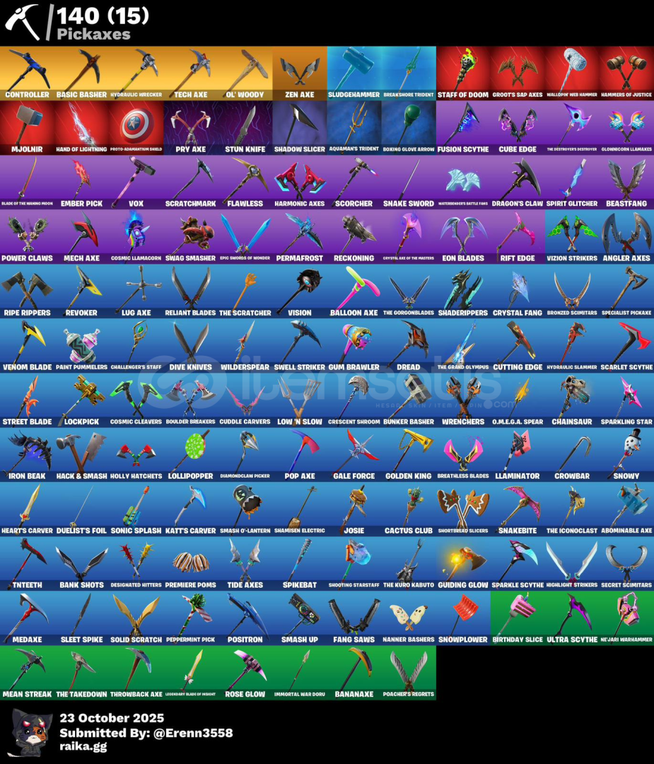 HESAPTA 143 KOSTÜM 155 ÇANTA 125 DANS 103 SİLAH SKİNİ 120 PARAŞÜT 140 KAZMA BULUNMAKTADIR
