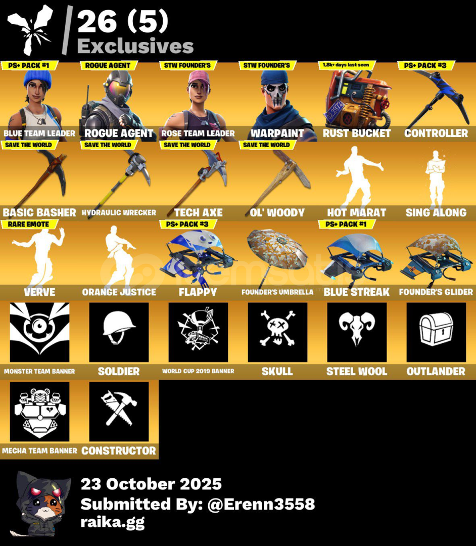 HESAPTA 143 KOSTÜM 155 ÇANTA 125 DANS 103 SİLAH SKİNİ 120 PARAŞÜT 140 KAZMA BULUNMAKTADIRHESAP 1473 SEVİYEDİR!HESAP OG HESAPTIR !HESAPTA NADİR SKİN DANS VE PARAŞÜTLER BULUNMAKTADIR!HESAPTAKİ 45 SKİN SON STİLDEDİR!HESAP 2017 KURULUŞLUDUR!HESAPTA DÜNYAYI KURTAR BULUNMAKTADIR!EPİC HESABIYLA BİRLİKTE VERİLECEKTİR EPİC HESABI DOLUDUR!52 OYUNE-POSTA ALICININ EPOSTASINA DEVRED&...
