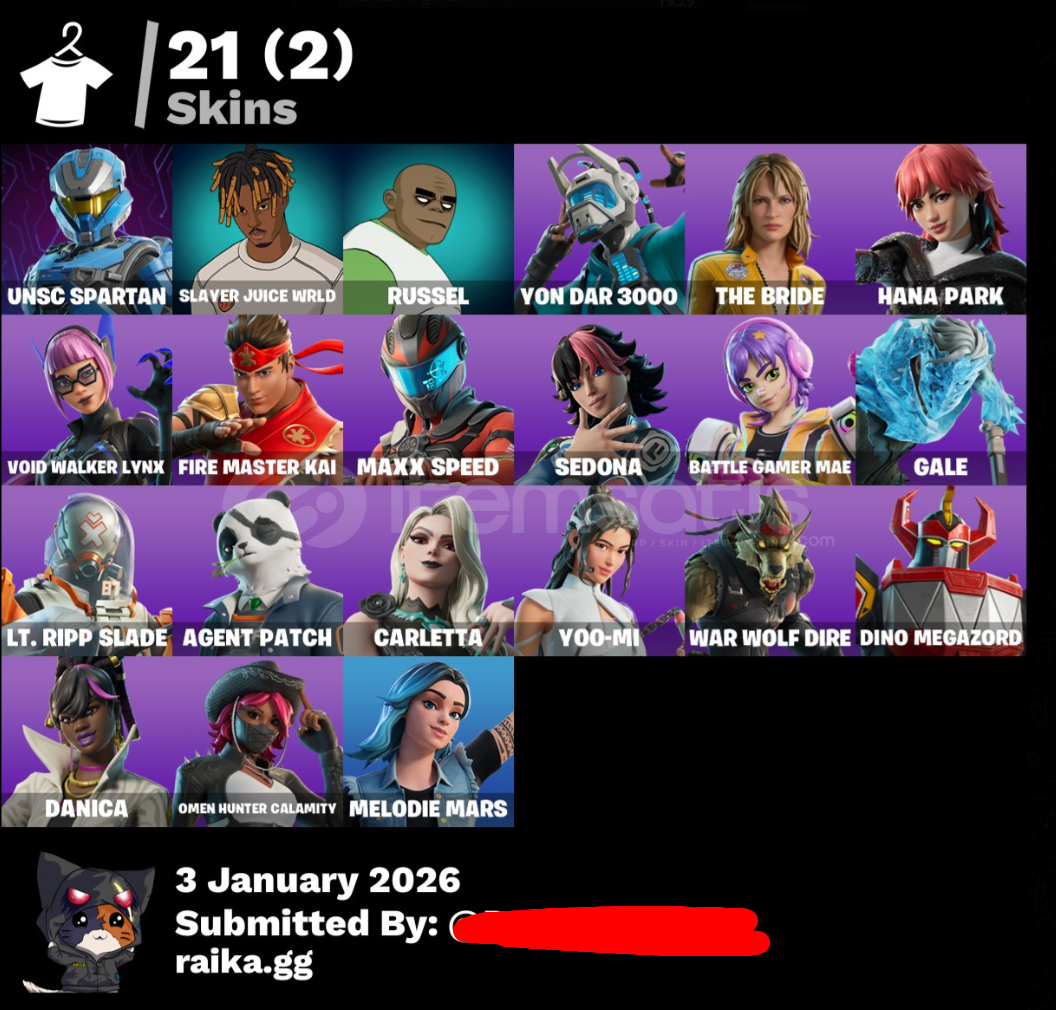 [PC] 21 skins | UNSC Spartan | SAVAŞÇI JUICE WRLD | Russel | Lamabot 3000 | Gelin | Hana Park | Hiçlik Gezgini Karakulak | ATEŞ USTASI KAI | 16600 VB