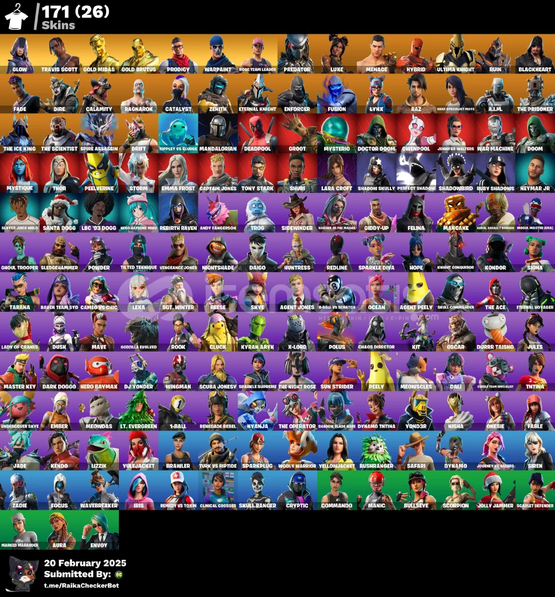 [PC] 171 skins | OG STW | Glow | Travis Scott | Merry Mint Axe | Gold Midas | Gold Brutus | Prodigy | Predator | Luxe | Menace | Hybrid | Ultima Knight | 435 VBhesap maili değişir (gmail)değerli kazmalar değerli skinler bulunurmail değişiminden sonra iade kapsamından çıkarhesap %100 güvenilirdiralıcısına hayırlı olsunİNDİRİM YAPILIR