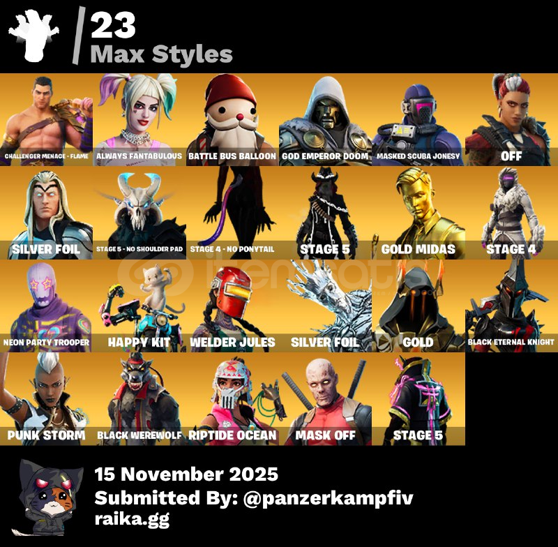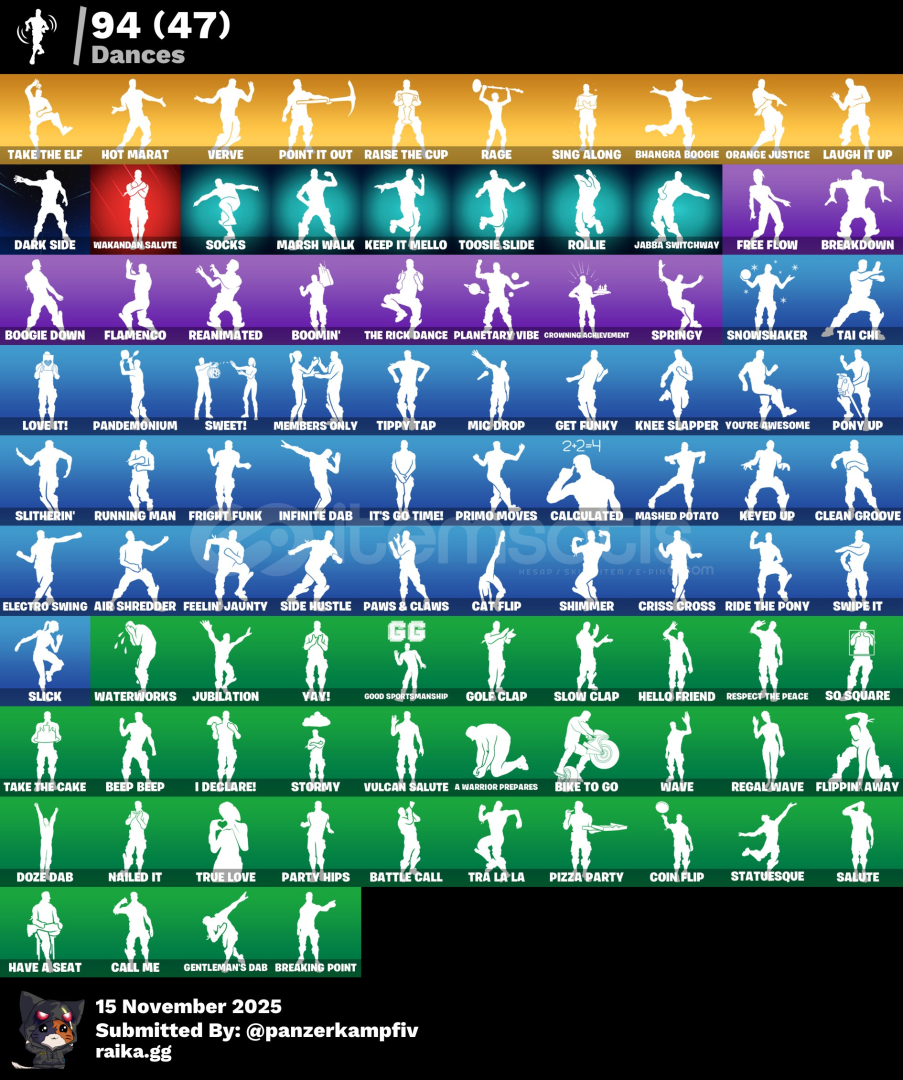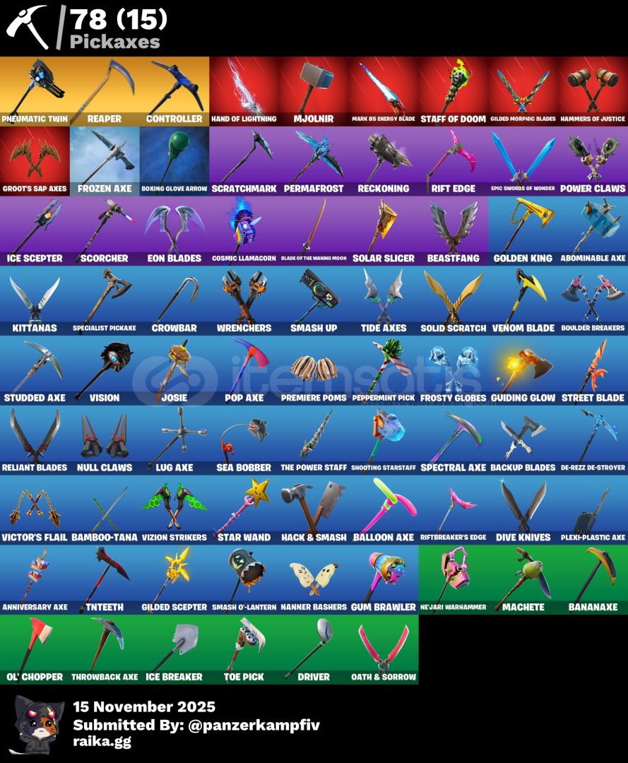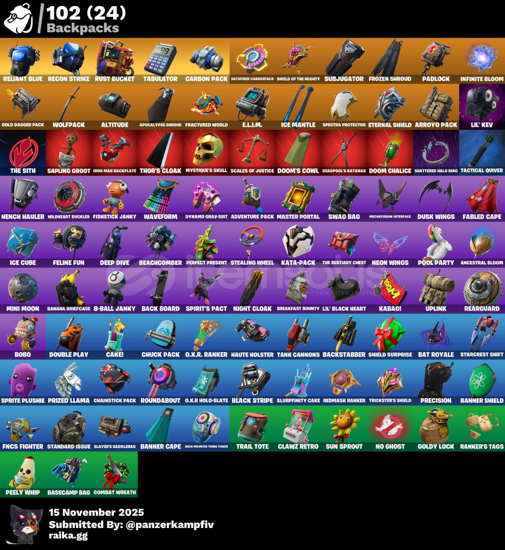 Hesapta 76 Skin, 102 Sırt Süsü, 78 Kazma, 94 Dans, 75 Planör bulunmaktadır.