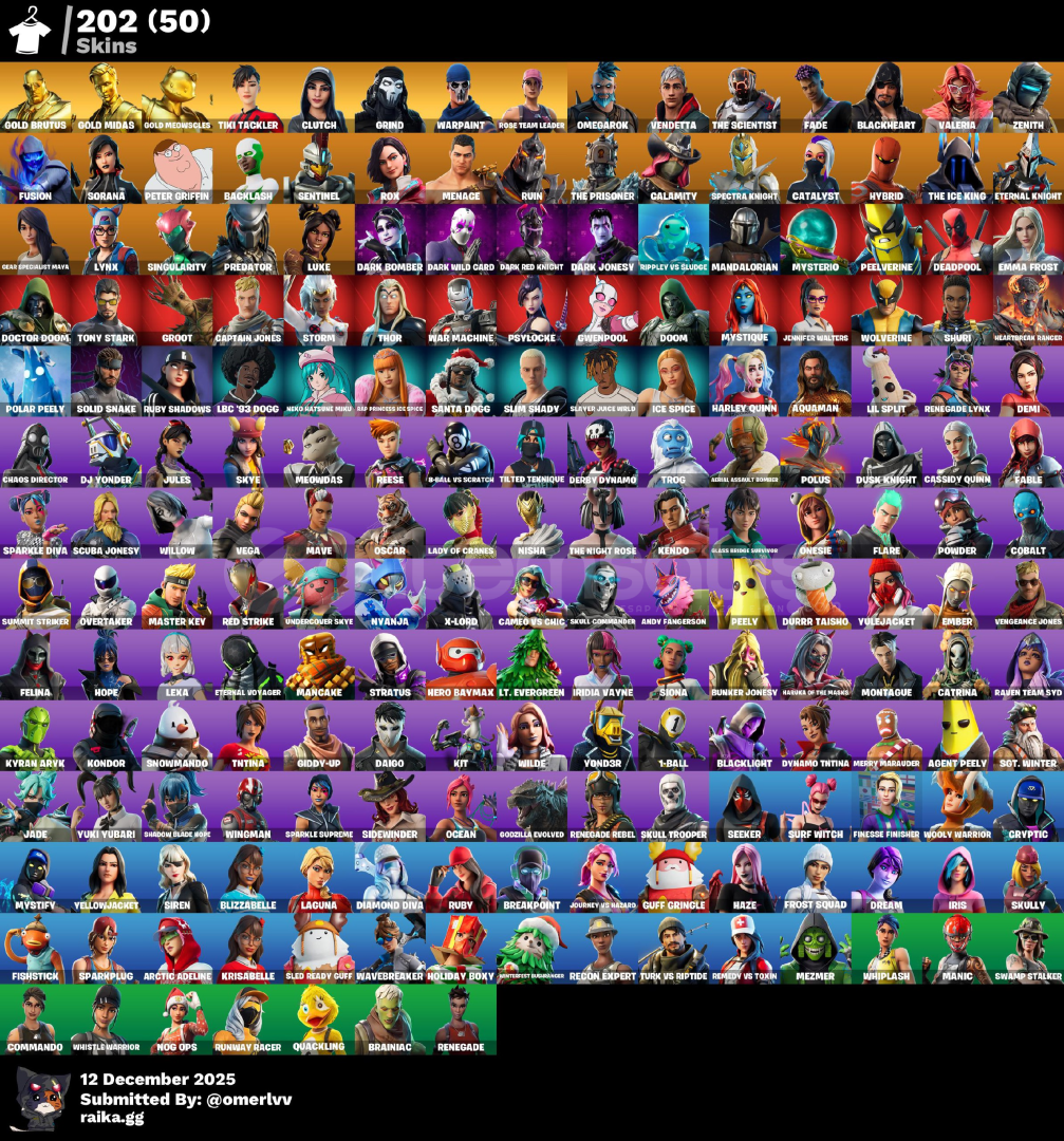 • hesap ogdir chapter 1 sezon 6dan beri oynanan bi hesap leviathan axe candy axe bir çok icon skin ve dans dopdolu hesap