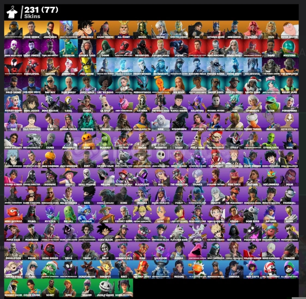 E-Postalı Fortnite hesabıdır, size devredilecektir.Hesapta 231 skin, 261 çanta, 186 kazma, 157 dans, 111 planör bulunmaktadırHesabın e-postasını anında değiştirebilirsiniz.
