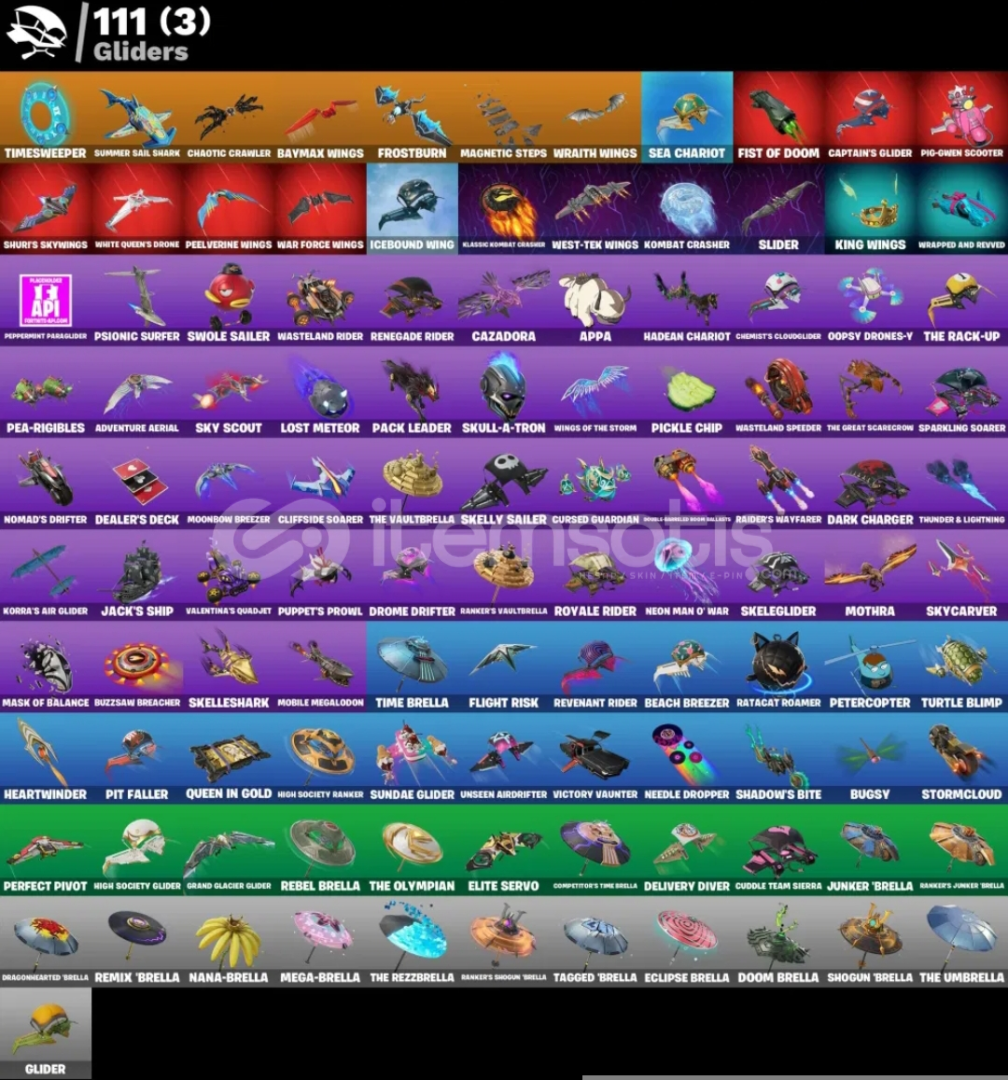 Hesapta 231 skin, 261 çanta, 186 kazma, 157 dans, 111 planör bulunmaktadır