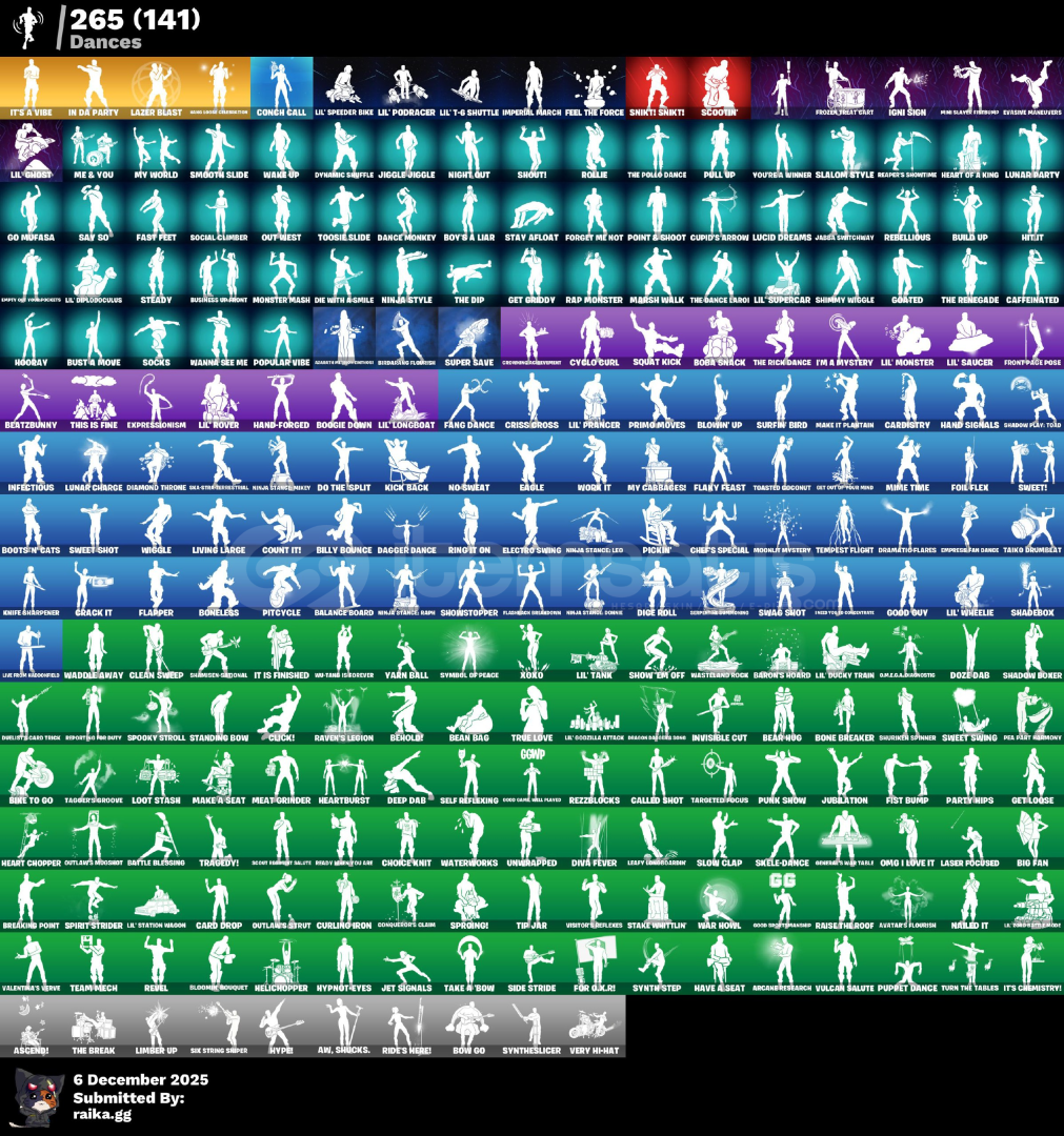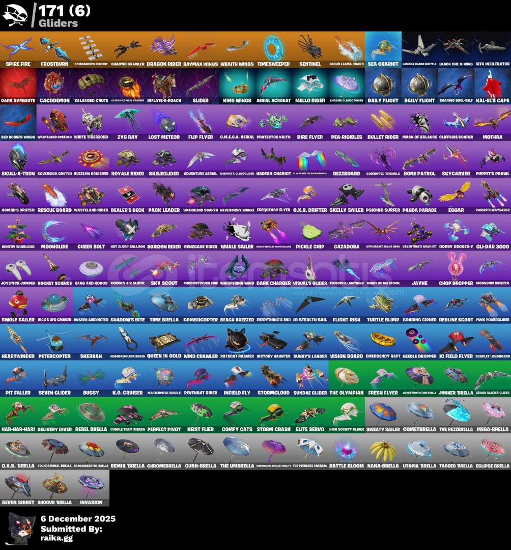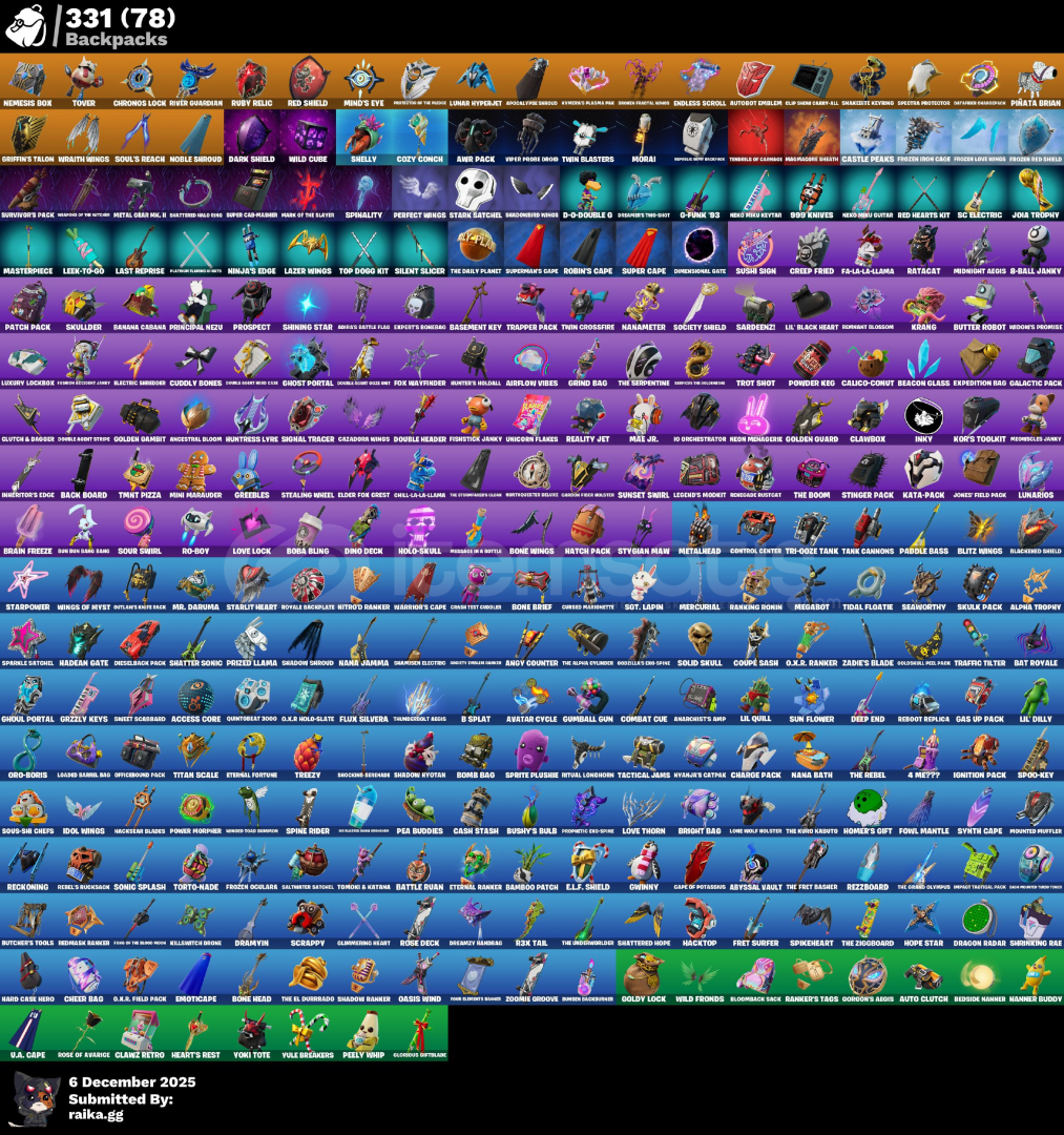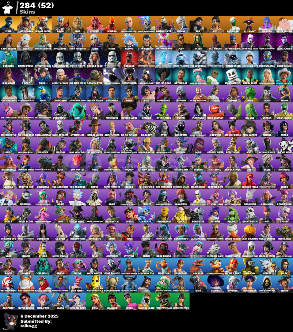 • Hesapta 284 Skin, 331 Sırt Süsü, 242 Kazma, 265 Dans, 171 Planör bulunmaktadır.