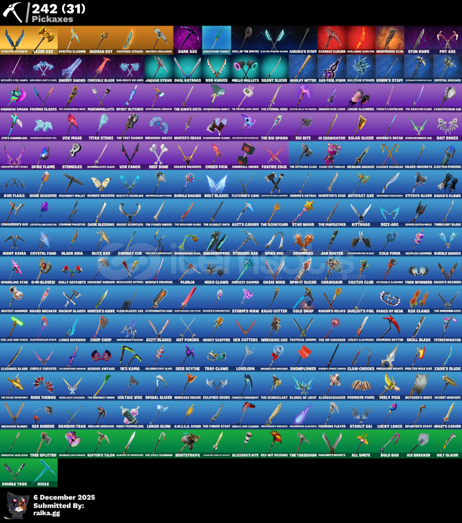 • SYNAPTIC HATCHETS, LAZER AXE, HADEAN KEY, DARK AXE GİBİ EŞSİZ KAZMALAR MEVCUTTUR.