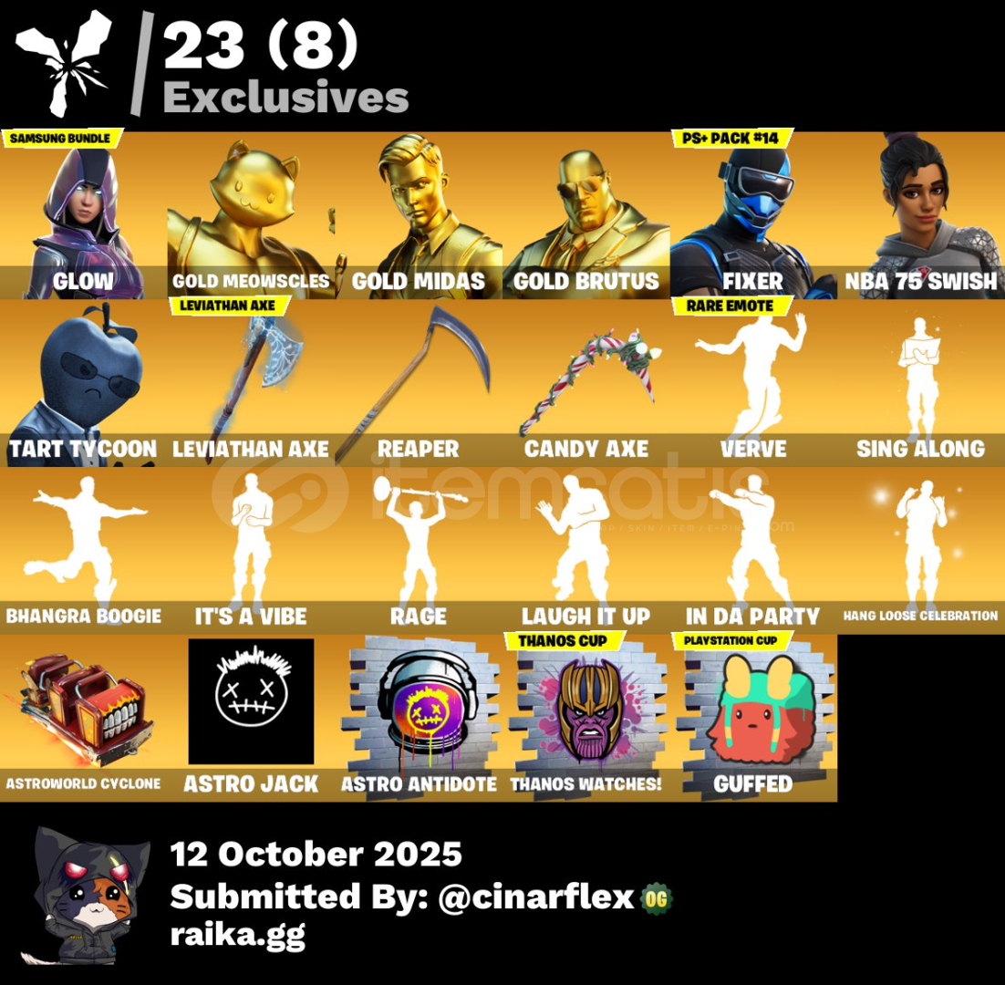 hesabın içerisinde çok "nadir" olan 'leviathan pickaxe, glow" eşyaları bulunmaktadır.