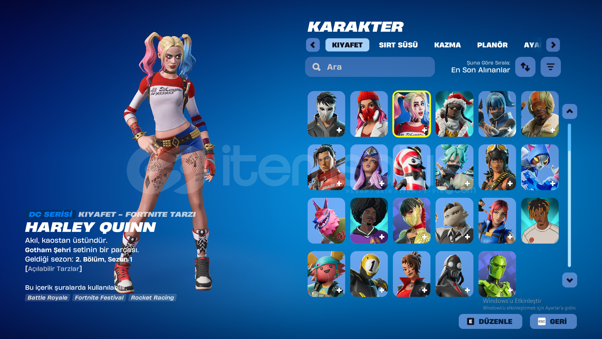 HESAPTA 300V-PAPEL BULUNMAKTADIRHARLEY QUİNN SOPALARI VE SKİNLERİ BULUNMAKTADIR.YILDIZ ASA KAZMA BULUNMAKTADIR.JORDAN AYAKKABI BULUNMAKTADIR.HESAP MAİLİ İLE DEVREDİLECEKTİR DİLERSENİZ MAİLİ DEĞİŞTİREBİLİRSİNİZ.ŞİMDİDEN HAYRILI OLSUN.