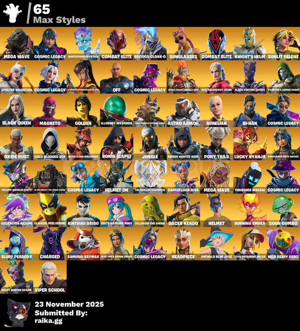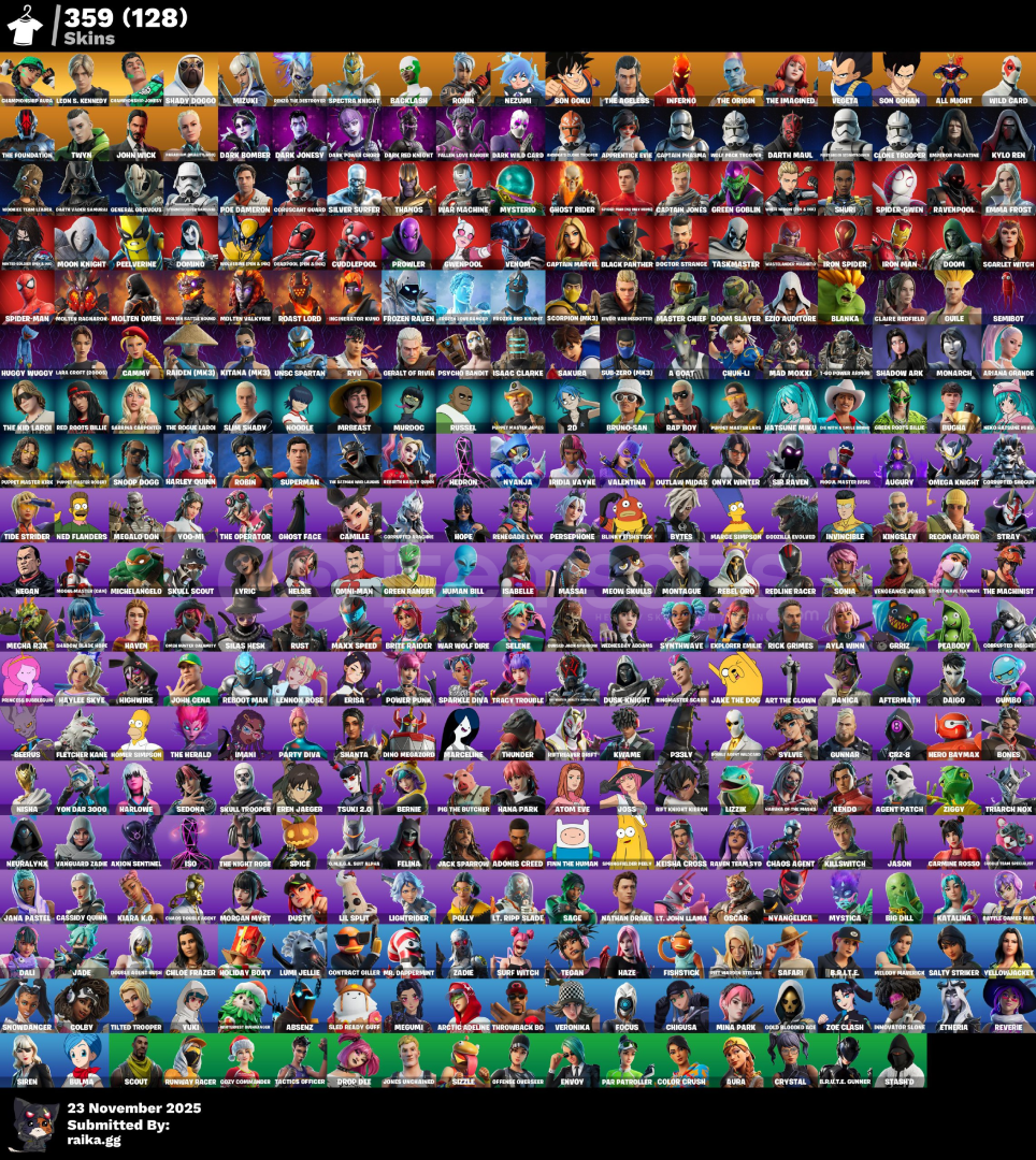 hesapta güncel olarak 361 lostğm vardır oyunu bıraktım oynamıyorum o yüzden satıyorumhesapta:33 tane marvel26 tane oyun efsaneleri serisi karakteriSTREET FİGHTER tüm karakterkeriRESİDENT EVİLdan leon s. kennedy ve claire redfield karakterkeri vardır UNCHARTED dan nathan drake ve chloe frazerog john wick kostümü vardır ciddi alıcılara detaylı video atarım