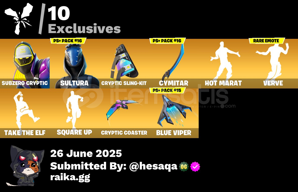 •Hesapta aşırı og Sultura Subzero Crpytic gibi skinler vardır.