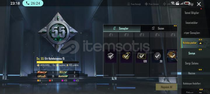 71 DESTANSI ÖĞE 20 YÜKSELTİLEBİLİR SİLAH 3 ÖZEL KARAKTER 4 YOLDAŞ KOLEKSİYON 55 LEVEL S 2 MASKESİ TÜM BAĞLARI TEMİZ SIKINTISIZ FORM GEÇMİŞİ TEMİZ