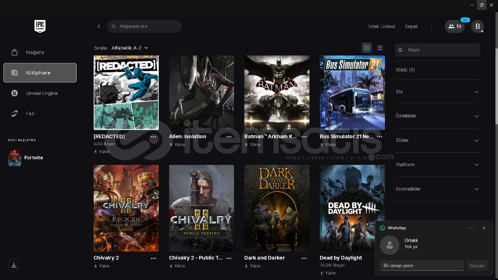 HUMAN, DEAD ISLAND 2, GHOSTRUNNER 1 ve 2, DEATHLOOP, FNAF SECURITY BREACH, BATMAN ARKHAM KNIGHT, ALIEN ISOLATION, DYING LIGHT, OUTLAST 1 ve 2, SHADOW OF THE TOMB RAIDER, SUICIDE SQUAD, KINGDOM COME DELIVERANCE, LEGO STAR WARS, CHIVALRY 2, HELL LET LOOSE, LIMBO, JUST CAUSE 4, Jurassic World Evolution 2, BUS SIMULATOR 21, REDACTED, ORCS MUST DIE 3, SIFU, THE OPERATOR, TINY TINA'S WONDERLANDS, WAR MONGRELS, WATCH DOGS LEGION OYUNLARI EPIC HESABINDADIR