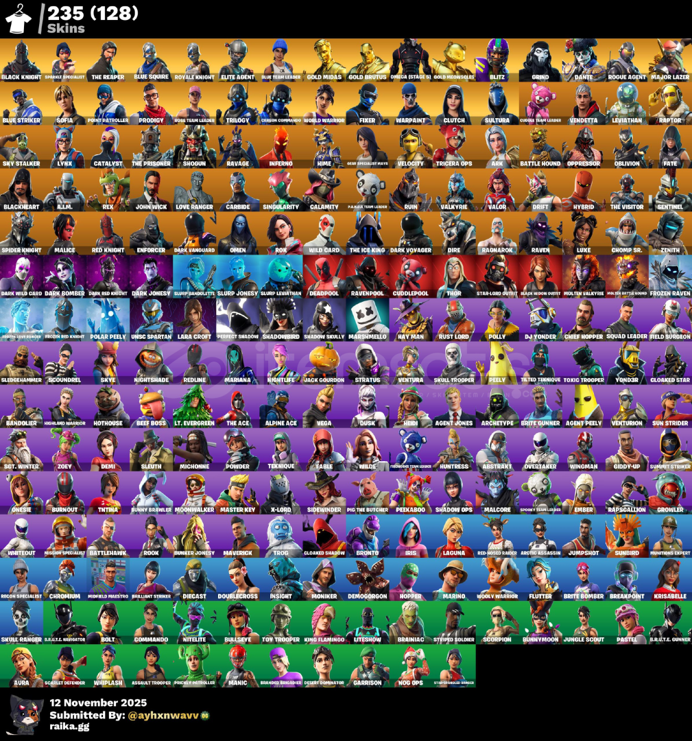 BLACK KNİGHT 235 SKİN DOLU OG HESAP ONLY RARE