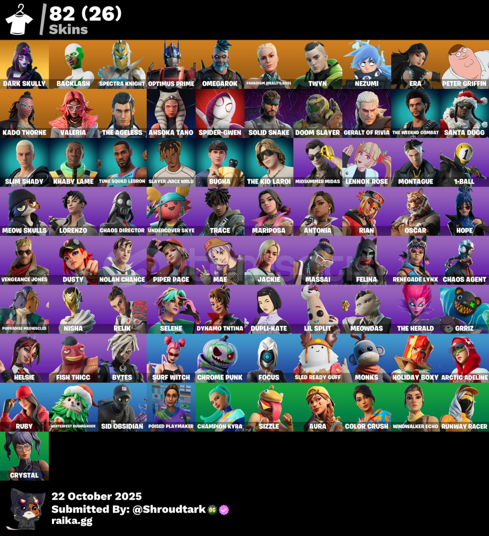 DARK SKULLY,AURO,SANTA DOGG,BUGHA,MİDSUMMER MİDAS GİBİ SEVİLEN BİRCOK SKİN VARDIR