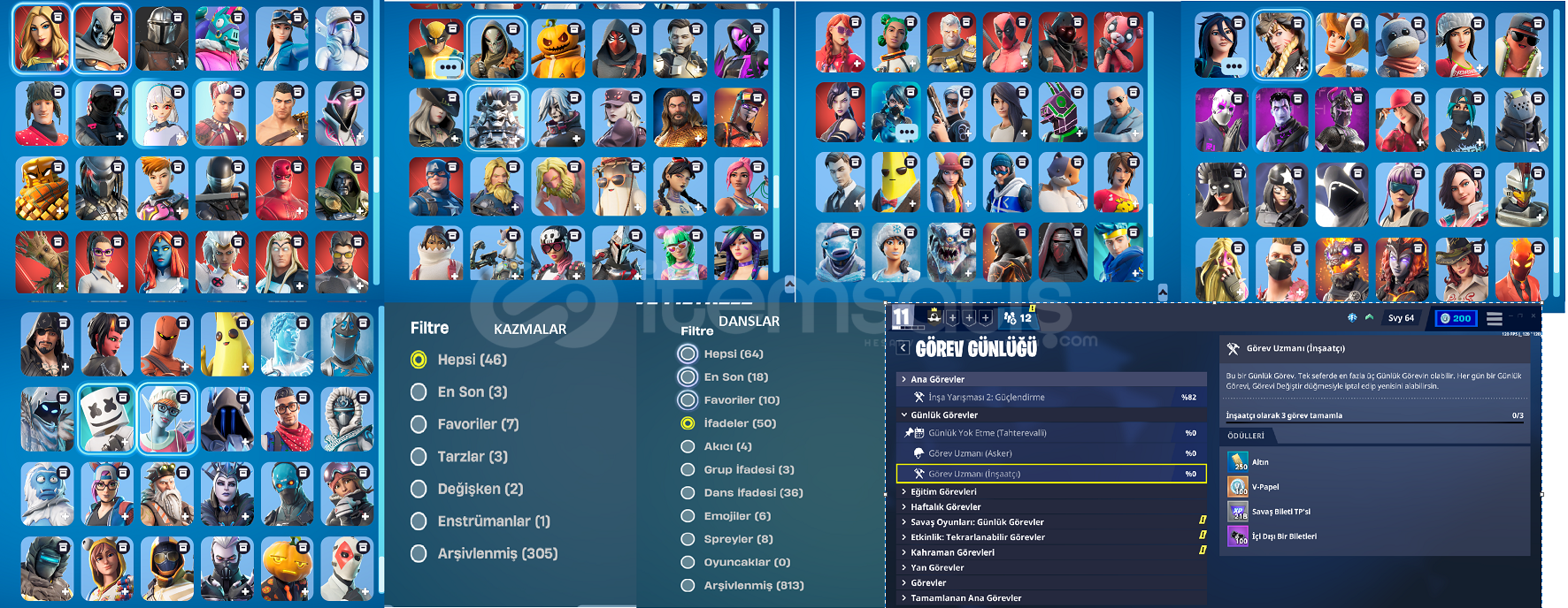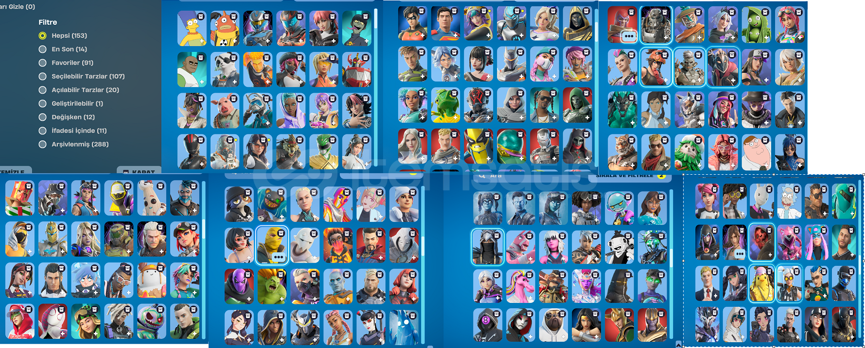görsellerde göründügü gibidir arşivlenmiş 288 gereksiz buldugum skin vardır şahsen kullanmıyorum alan kişi arşivden çıkartıp kullanabilirve 2. ekran görüntülerinde arşivde olmayanlar vardır 3 ve 4. ss de arşivlenmiş skinlerOG DÜNYAYI KURTAR VARDIR PAPEL KASILABİLİR