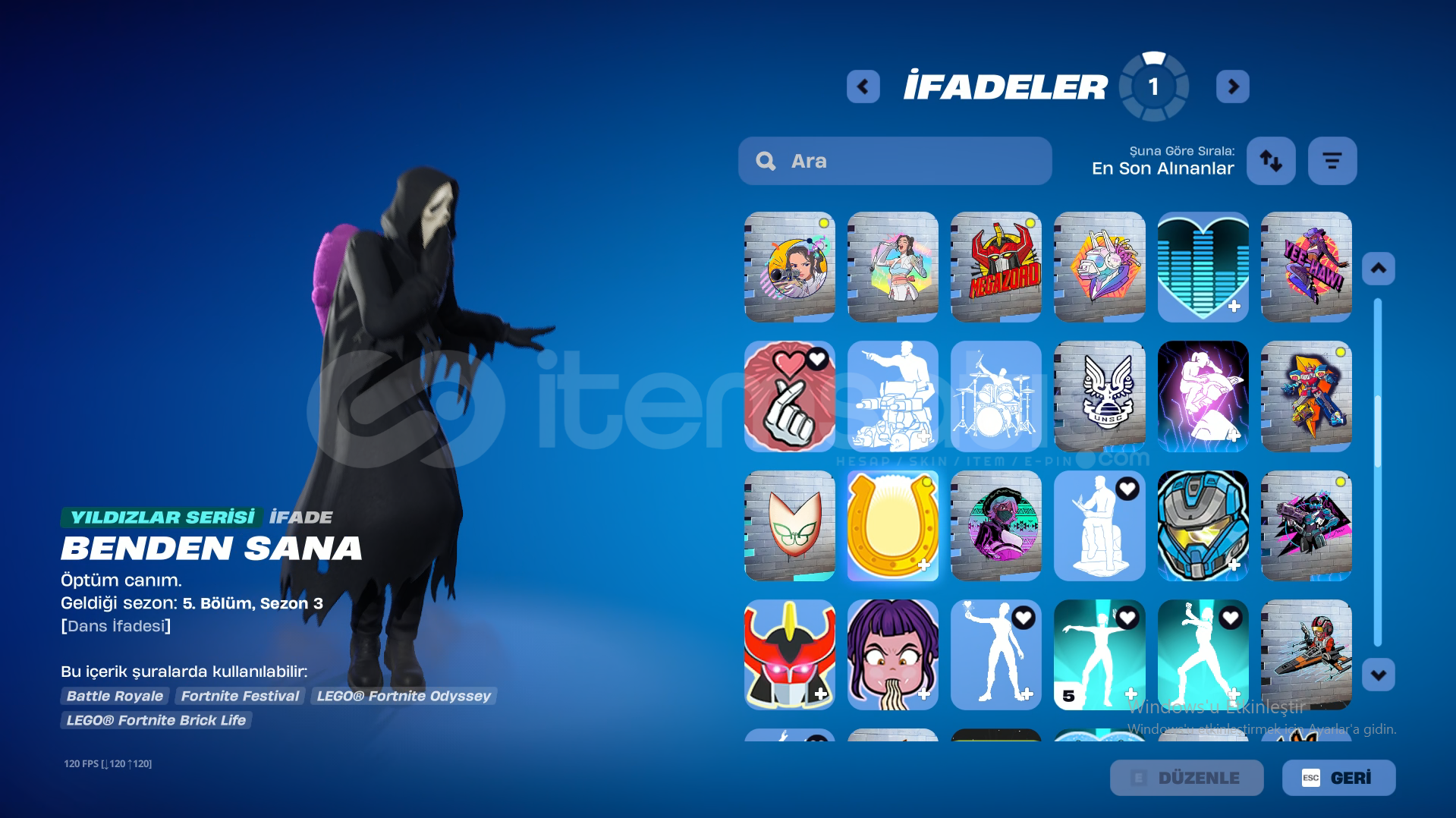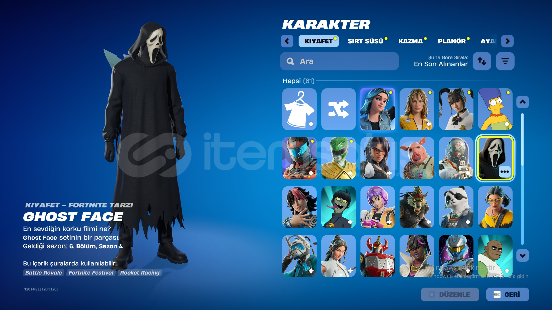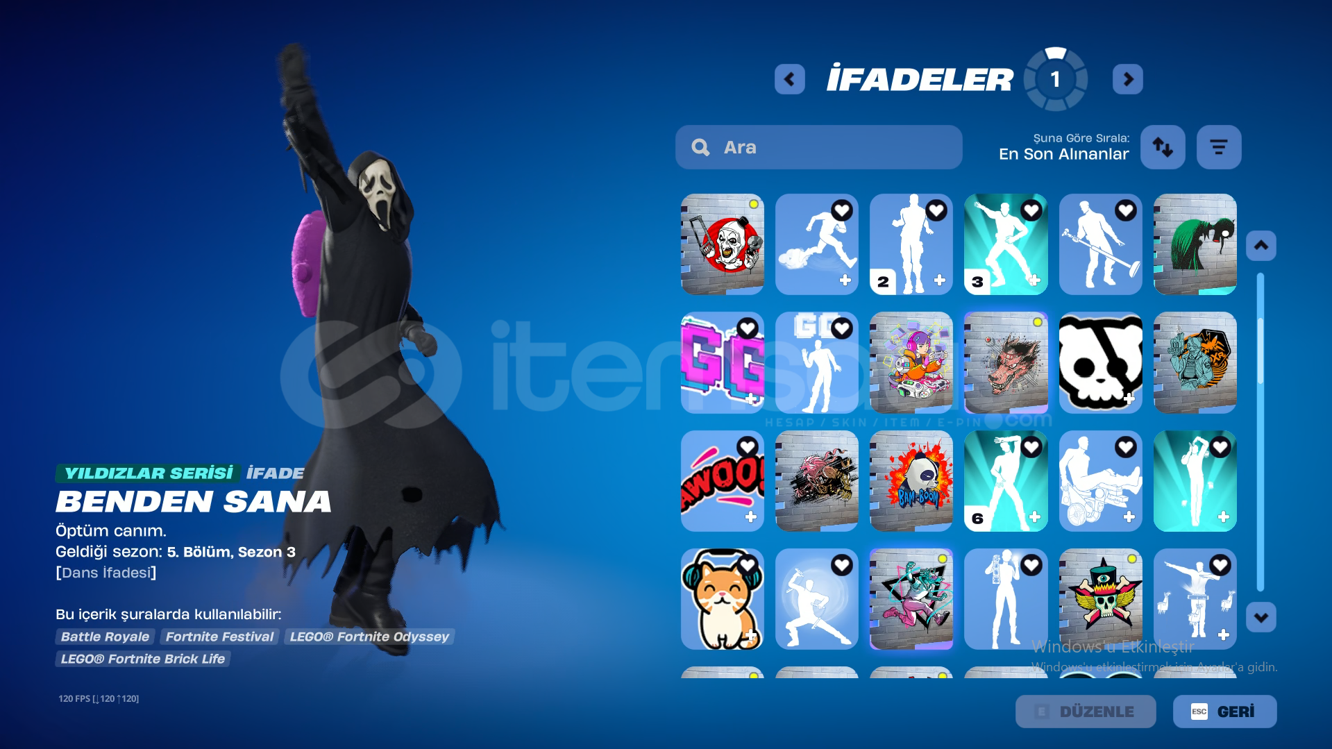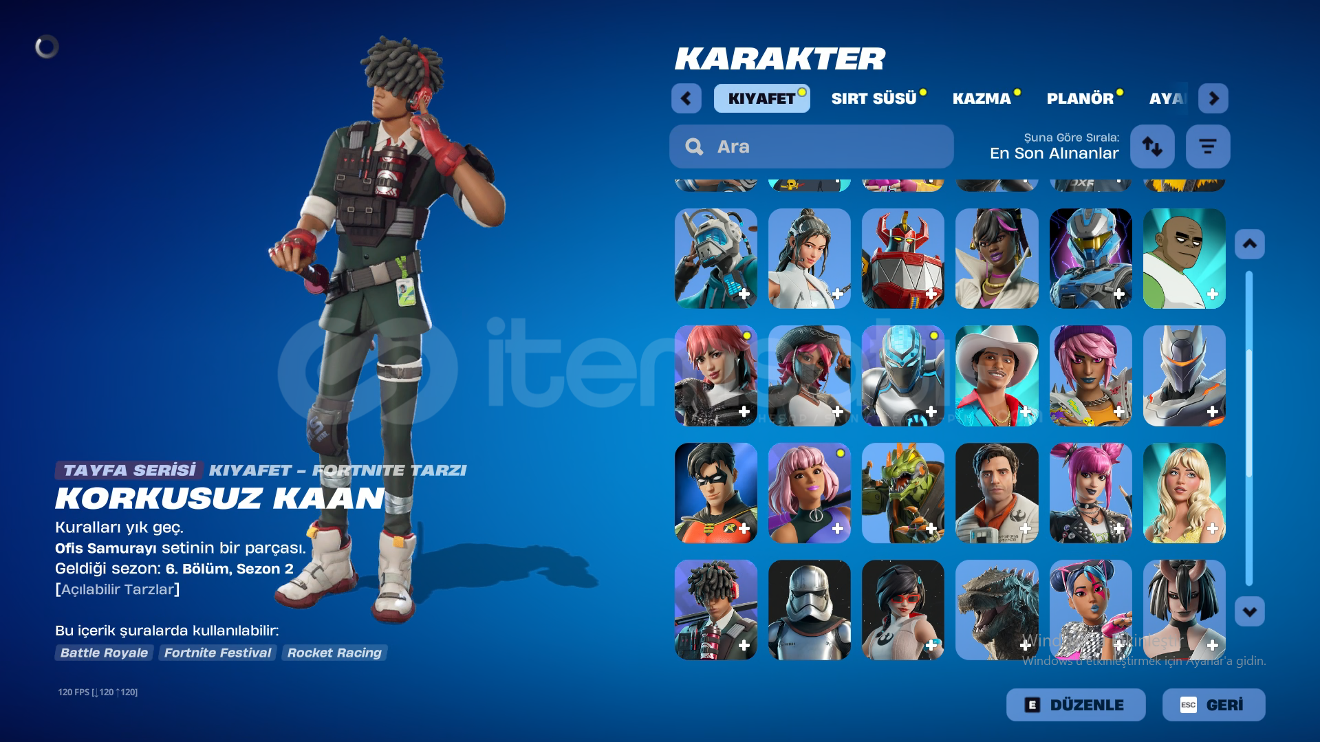 Fortnite 60 skin + emote + tayfa + birkaç oyun
