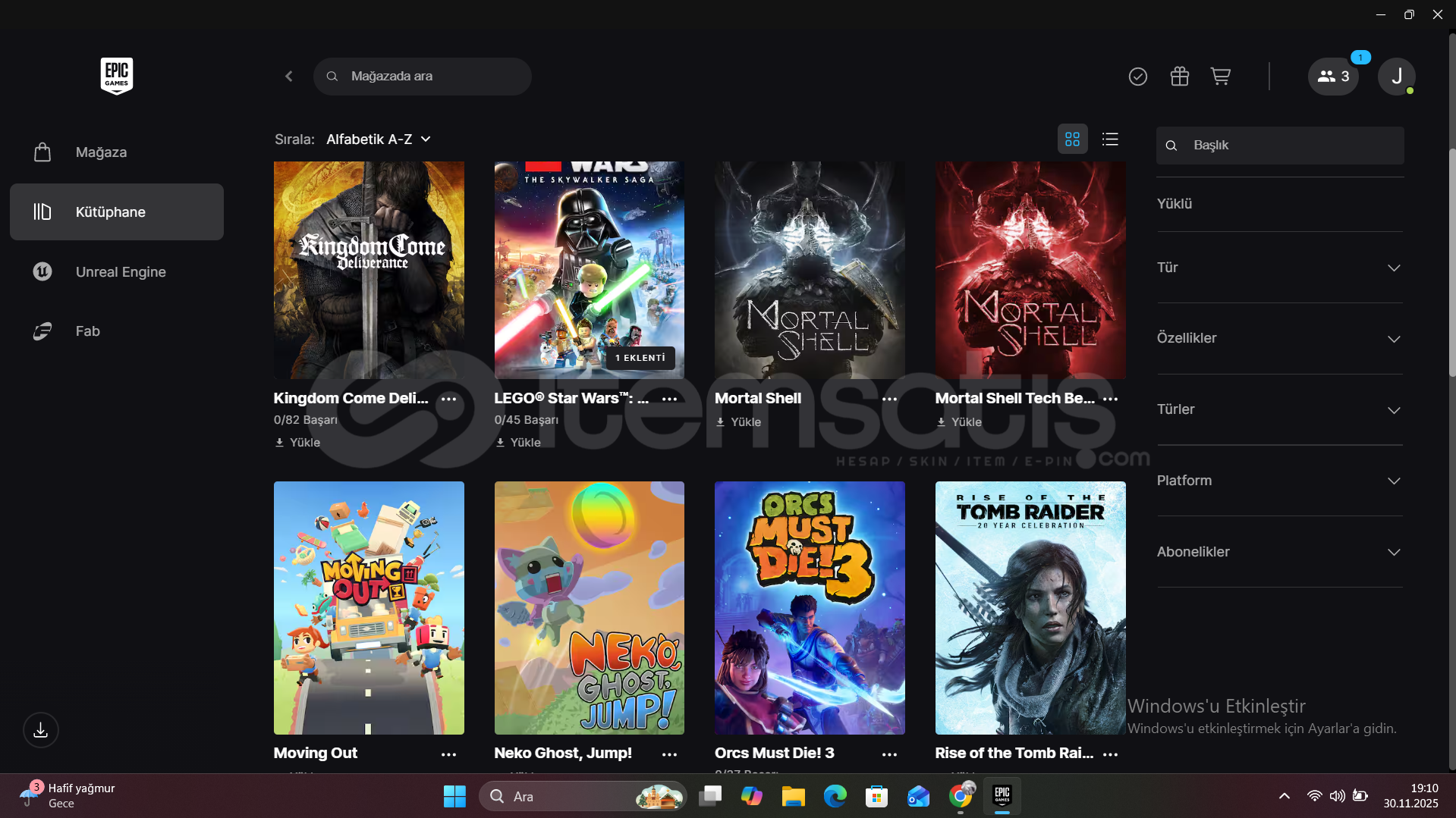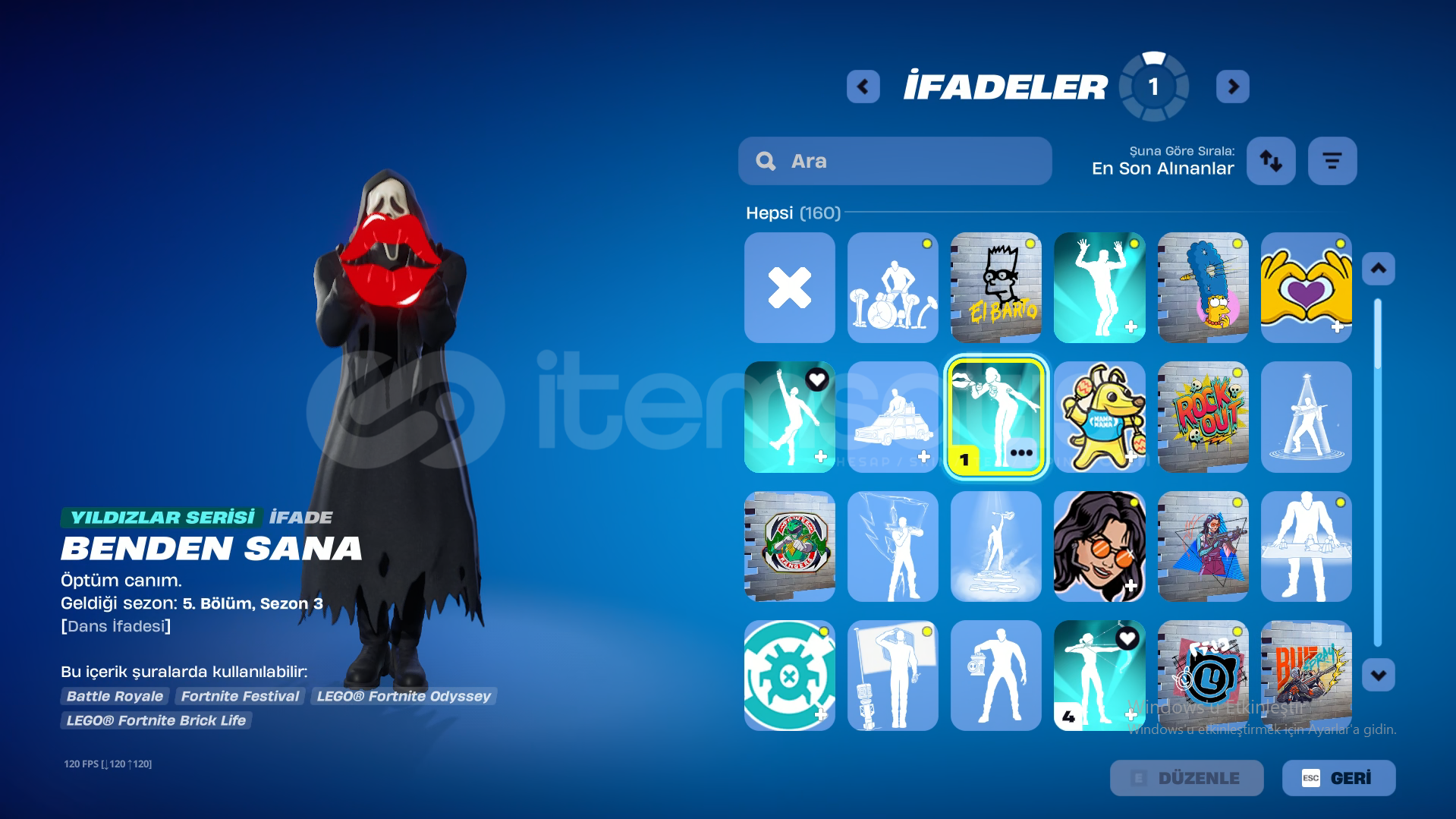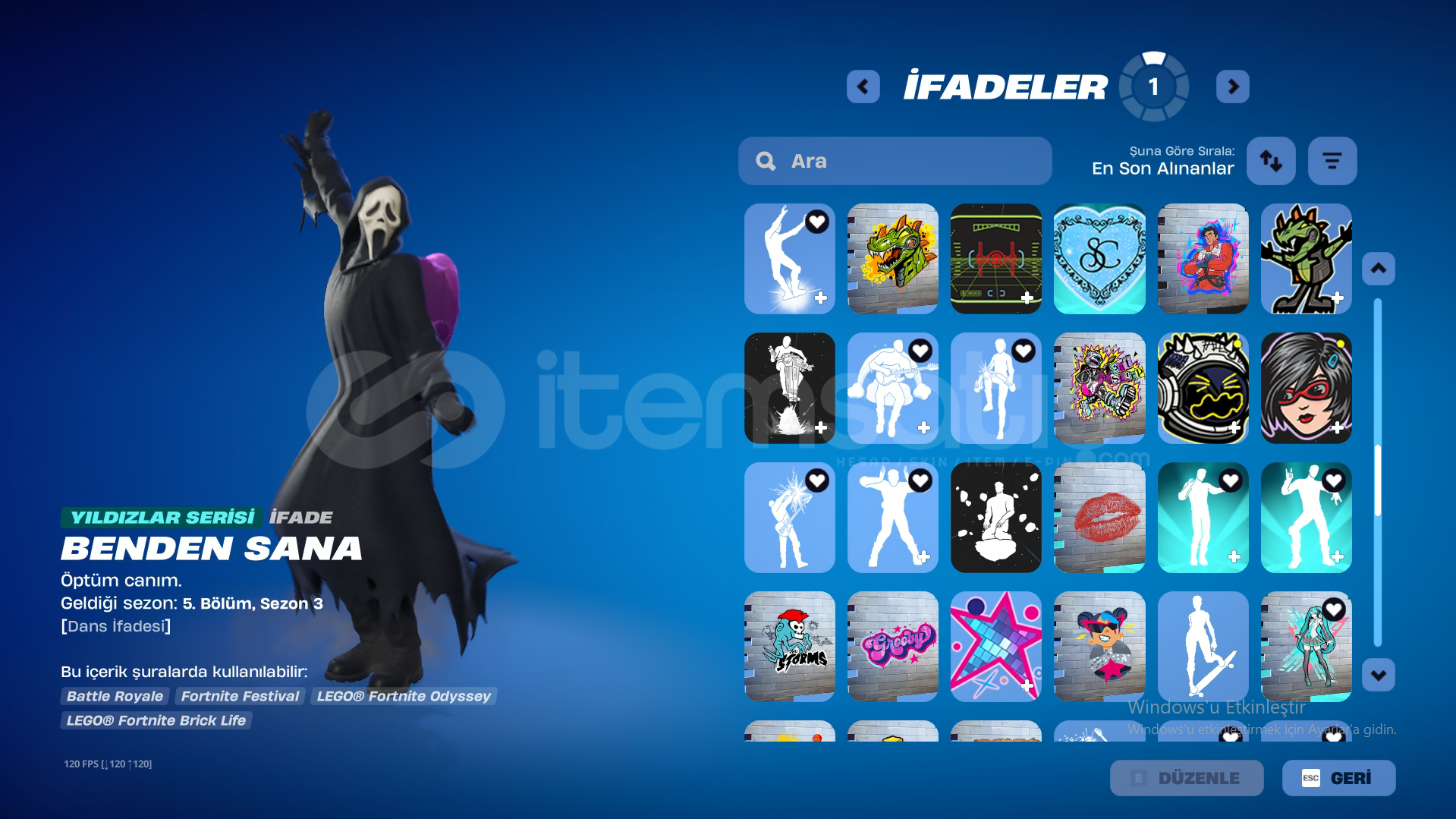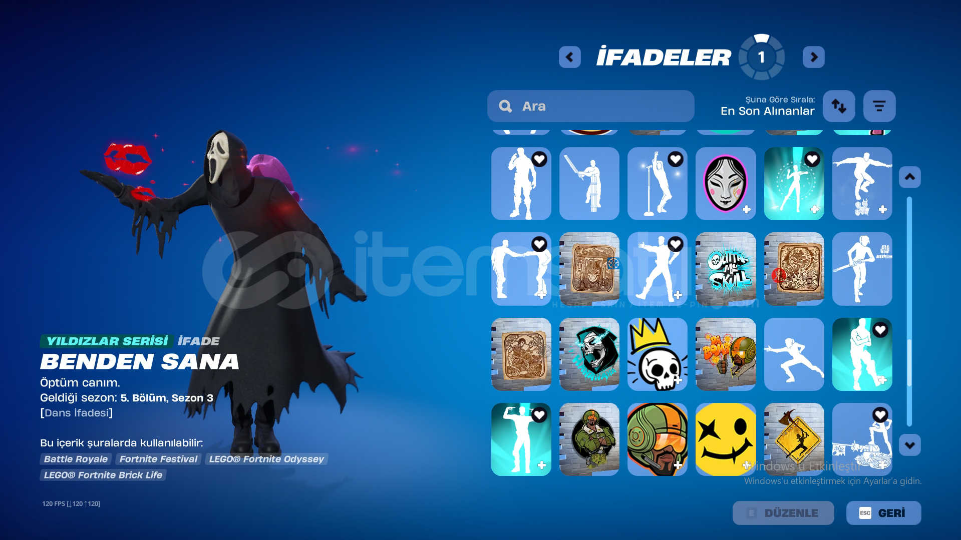 Fortnite 60 skin + emote + tayfa + birkaç oyun