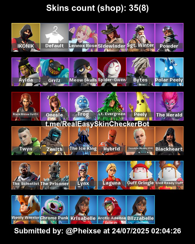 merhaba görseldeki skinler vardır ve ek olarak fortnite ın en değerli skini olan ikonik mevcut