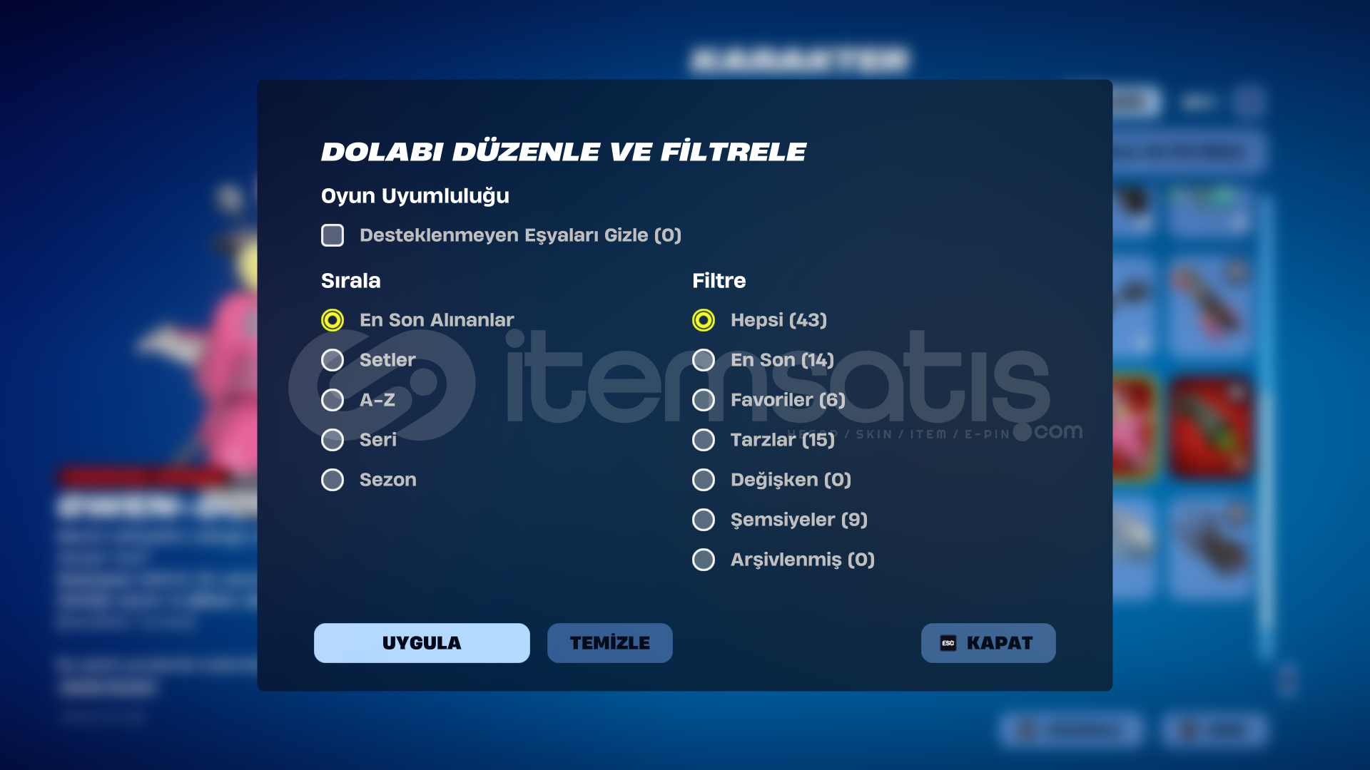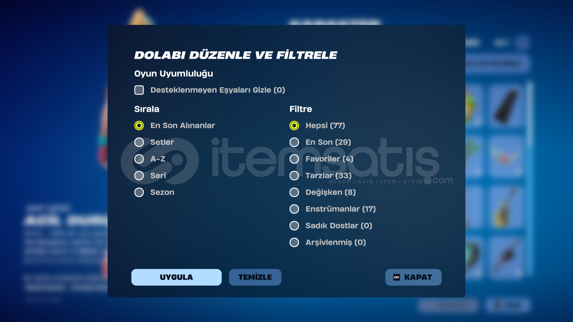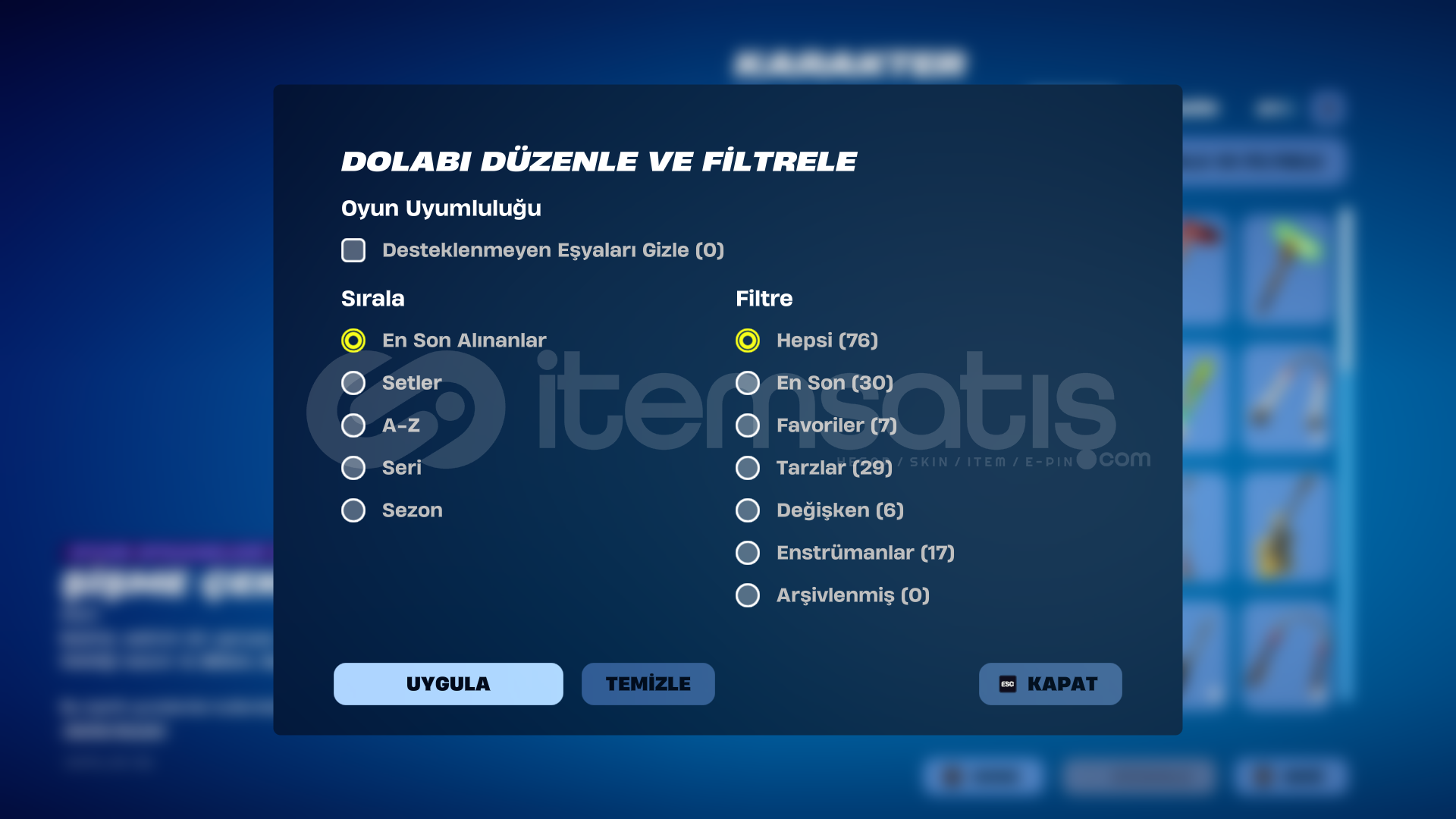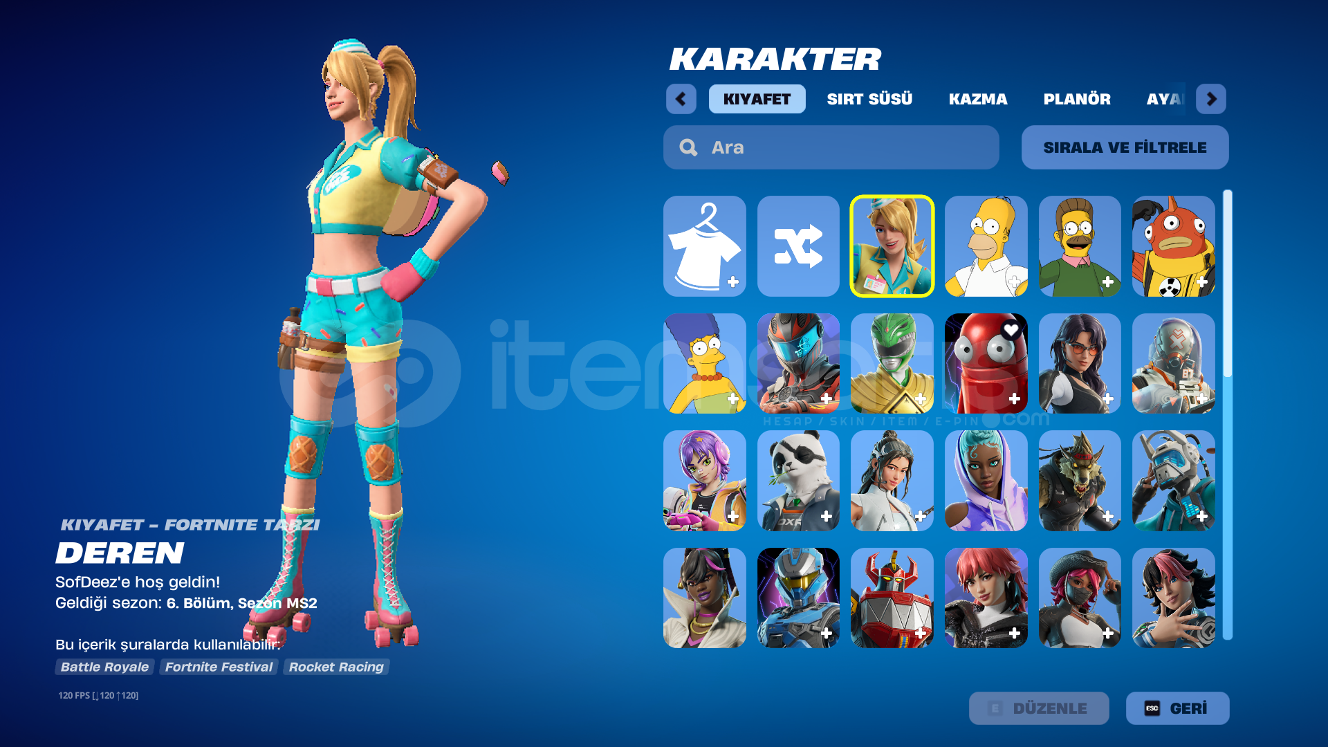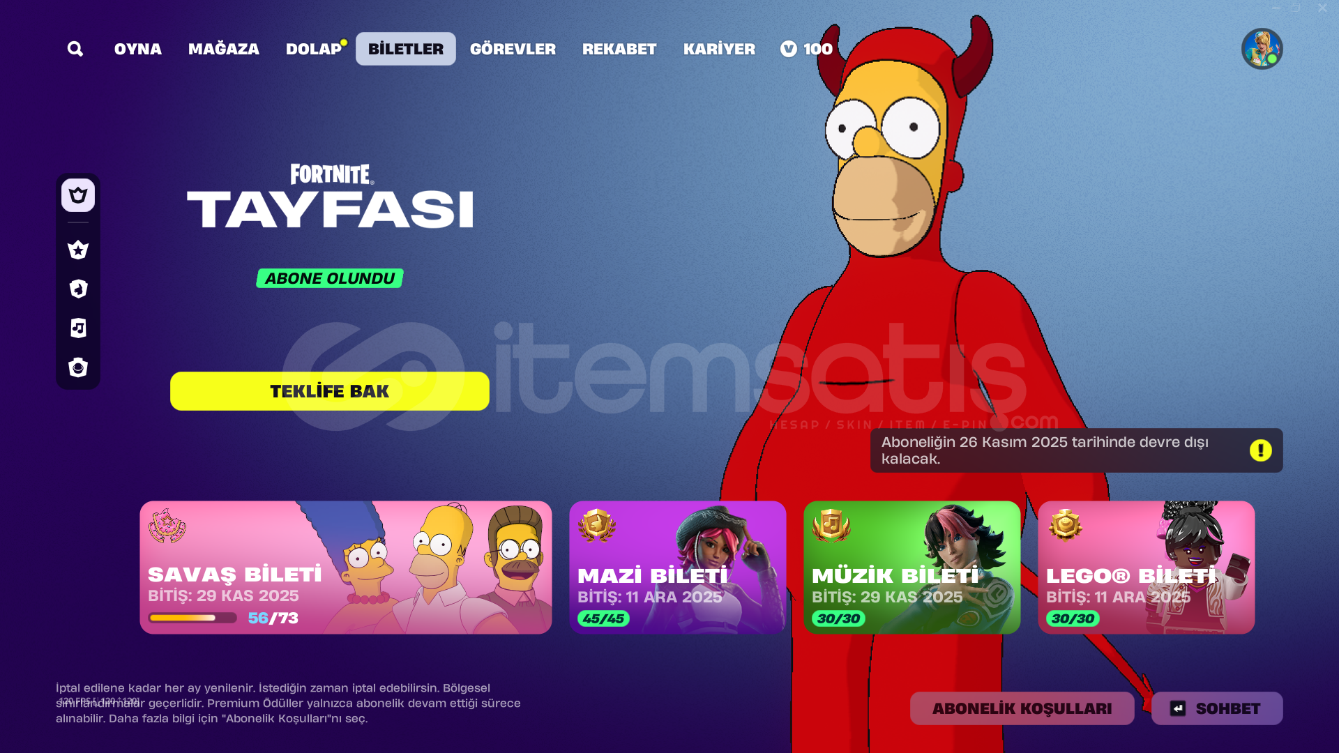 🎮 Fortnite Hesabım Satılıktır! 100 VP mevcut 70 seviye, 1 aylık Tayfa aktif ( TAYFANIN BİTİŞ TARİHİ : 26 KASIM 2025 !!! ) Gelecek olan Chapter 7 Battle Pass Tayfayla ile birlikte gelecektir. ( TAYFANIN BİTİŞ TARİHİ : 26 KASIM 2025 !!! ) Battle Pass tamamen fullenmiş 57 Skin, 77 Sırt Süsü, 76 Kazma, 43 Planör Air Jordan Black Toe ayakkabısı mevcut 31 Dalış İzi, 8 Aura, 175 İfade, 42 Silah Kaplaması, 88 Yükleme Ekranı Yeni gelen yoldaş köpek (Epic Games ödülü) hesaba tanımlı Araçlar: BMW 1 Series ve Rocket League arabası