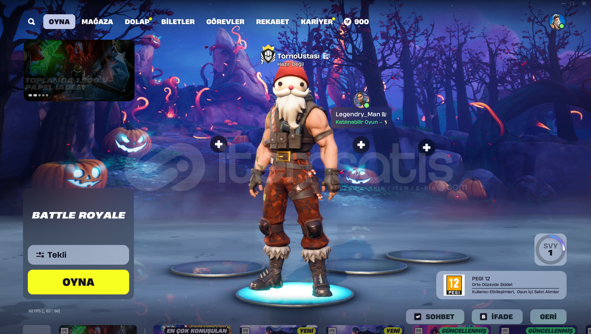 HESAP 30 SKİNLİ OG HESAPDIROG DEĞERLİ SKİNLER,KAZMALAR,PLONÖRLER VE DANSLAR VARDIR (TAKE THE ELF VB.)HESAPDA 900 VP VARDIRHESAPDA MAİL VE İSİM DEĞİŞİMİ AKTİFDİRBU FİYATA KAÇMAZ (EN DÜŞÜK FİYAT)