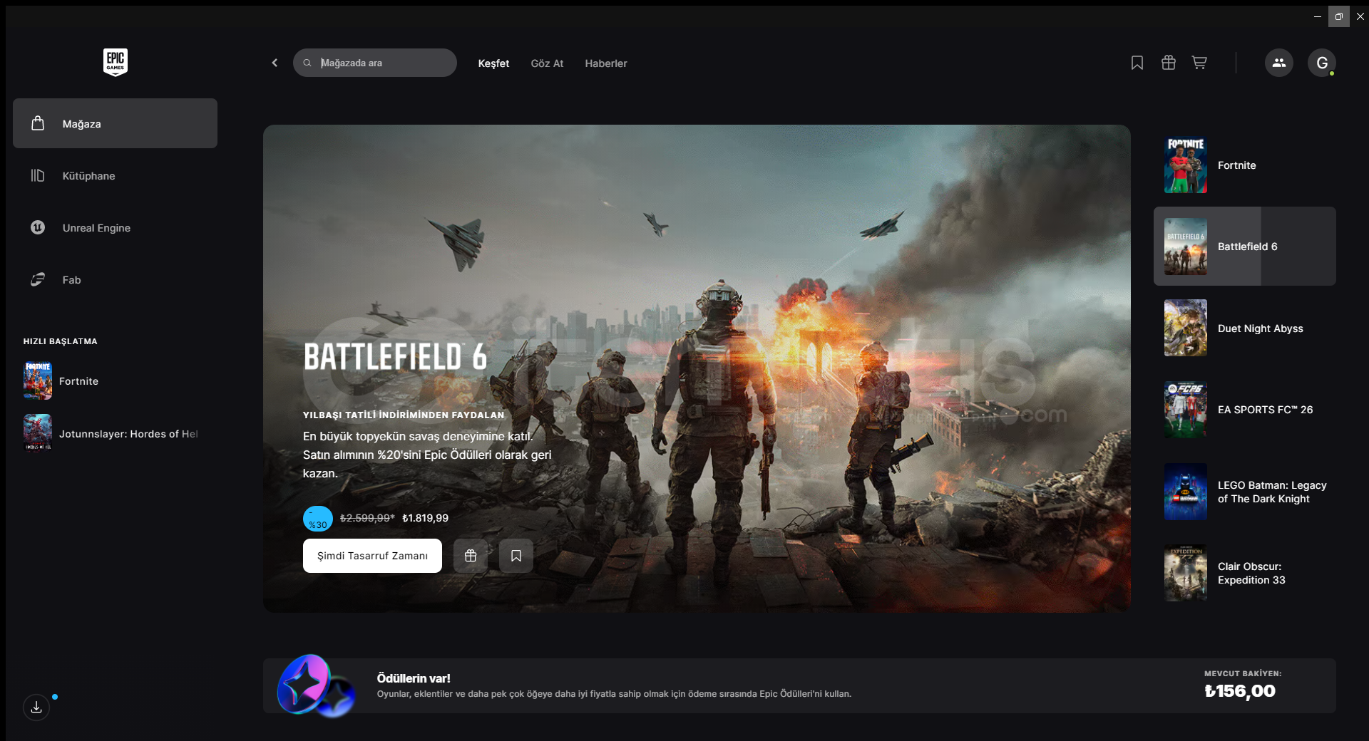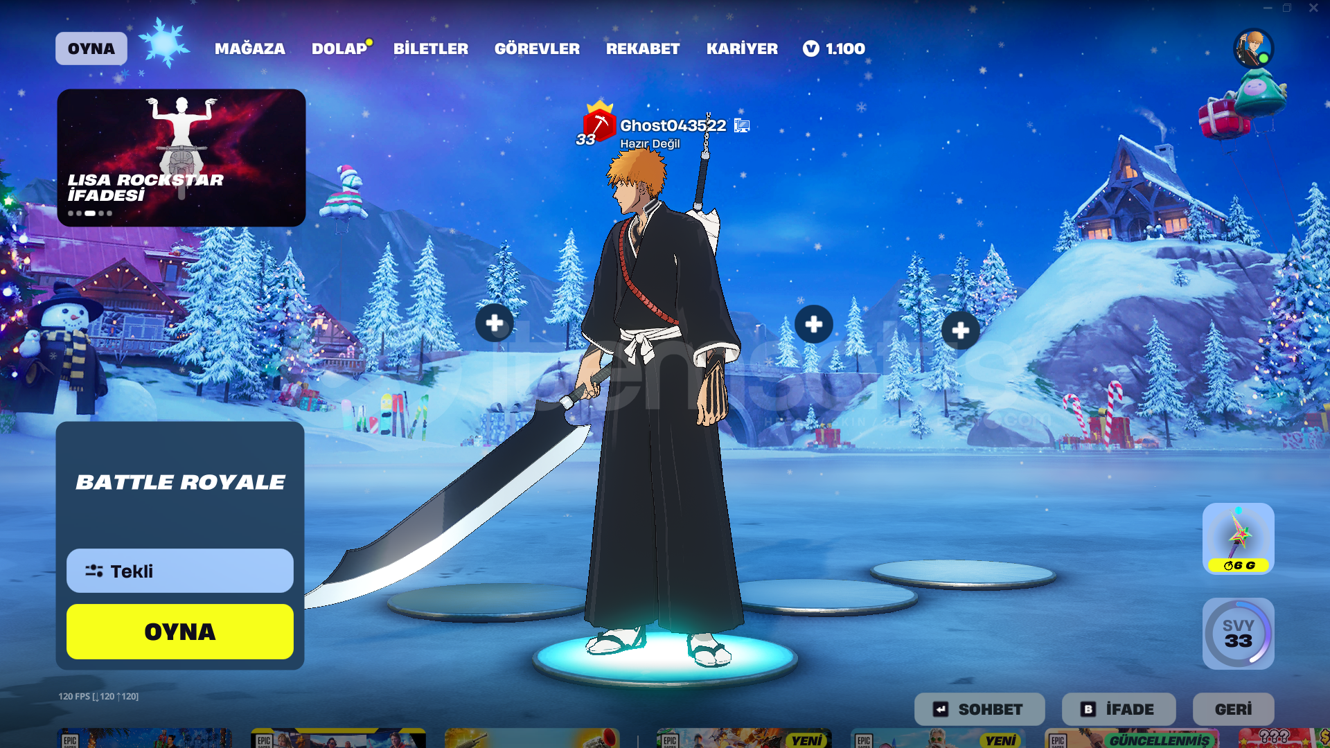hesapda bleach paketi var 1100 vpapel var epic games hesabıyla beraber satılmakta epic games bakiyesi 156 tl vardır