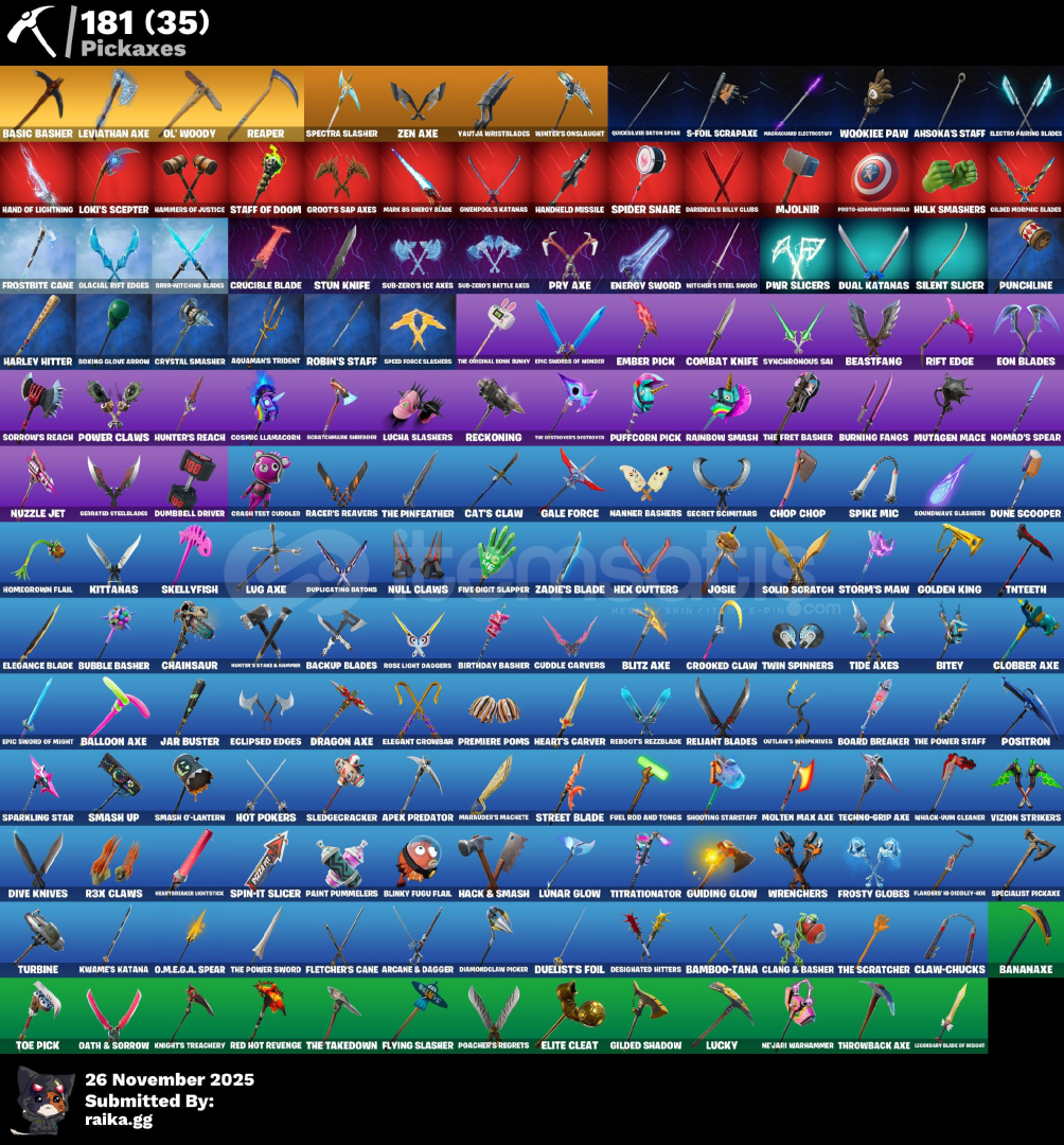 • Birçok nadir, OG, Battle Pass ve kolaborasyon içeriklerine sahip