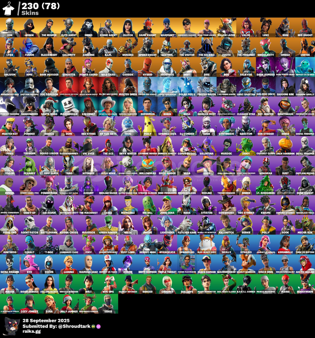 İKONİK,EON,THE REAPER YANİ JOHN WİCK,MAJOR LAZER,OMEGA,NİKE SKİNLERİ,MİNTY,TAKE THE L, VE BİRCOK NADİR OG İTEM BULUNMAKTADIR