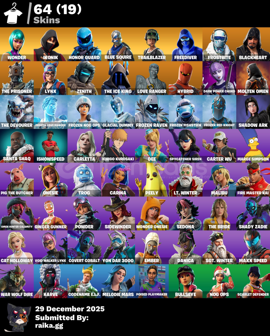hesapta çok nadir olan wonder ikonik ve honor guard skinleri vardır