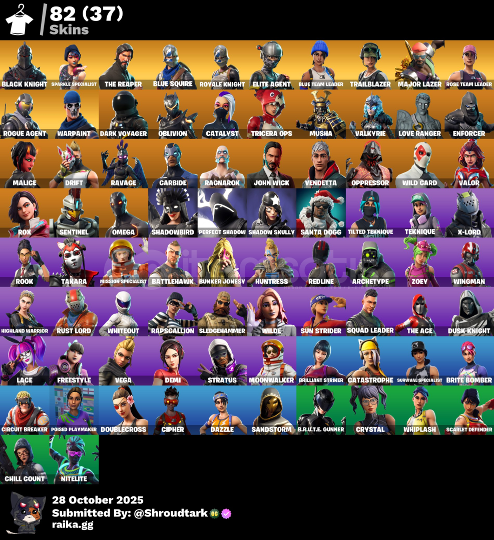 KARA SOVALYE,THE REAPER(OG JOHN WİCK),OMEGA,RAGNAROK,DRİFT,TWİTCH PRİME PAKETİ DE VARDIR GÜZEL OG HESAPTIR