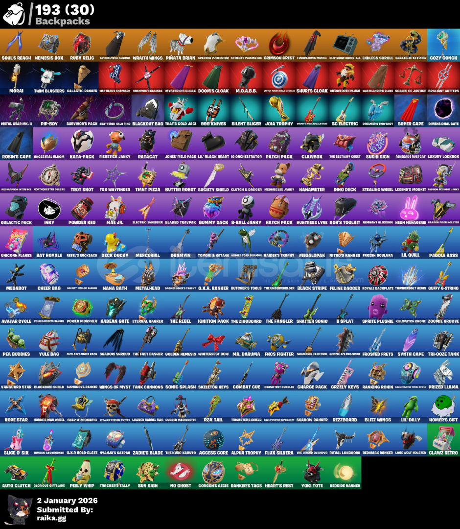 HESAP ÖZELLİKLERİ:Toplam Skin Sayısı: 120 (Seçkin ve popüler skinler).Nadir BP Skinleri: Lara Croft, Rebirth Raven, Rick Sanchez, Superman, Spider-Man.Full Marvel/DC: Gwenpool, War Machine, Doom, Wolverine, Shuri, Mysterio ve dahası!Kazmalar: 154 Adet (Ice Breaker gibi tryhard kazmalar mevcuttur).Sırt Çantaları: 193 Adet.GÜVENCE:Hesap tüm bilgileriyle (e-posta dahil) teslim edilecektir.PC, PlayStation, Xbox ve Mobil platformlar...