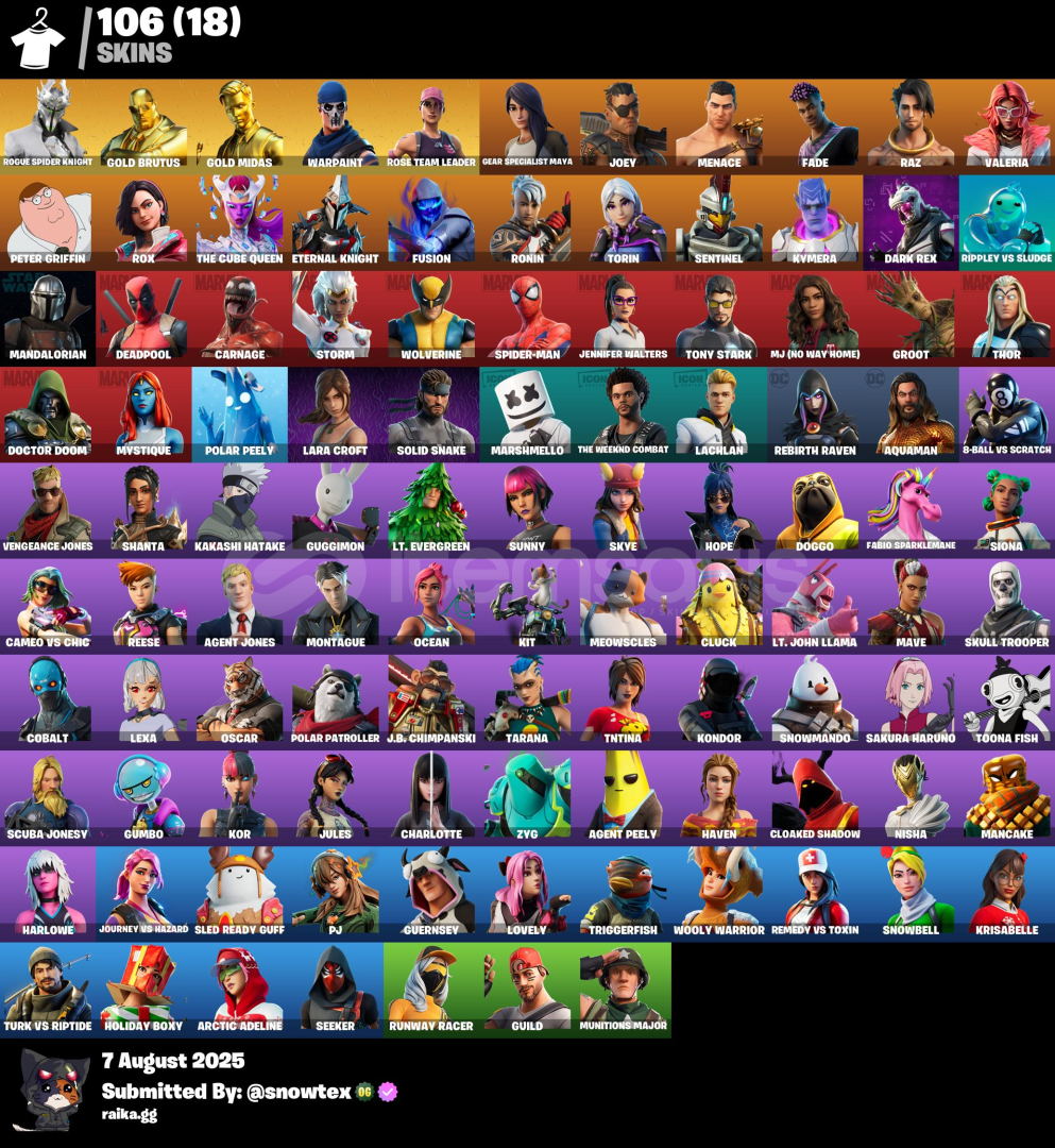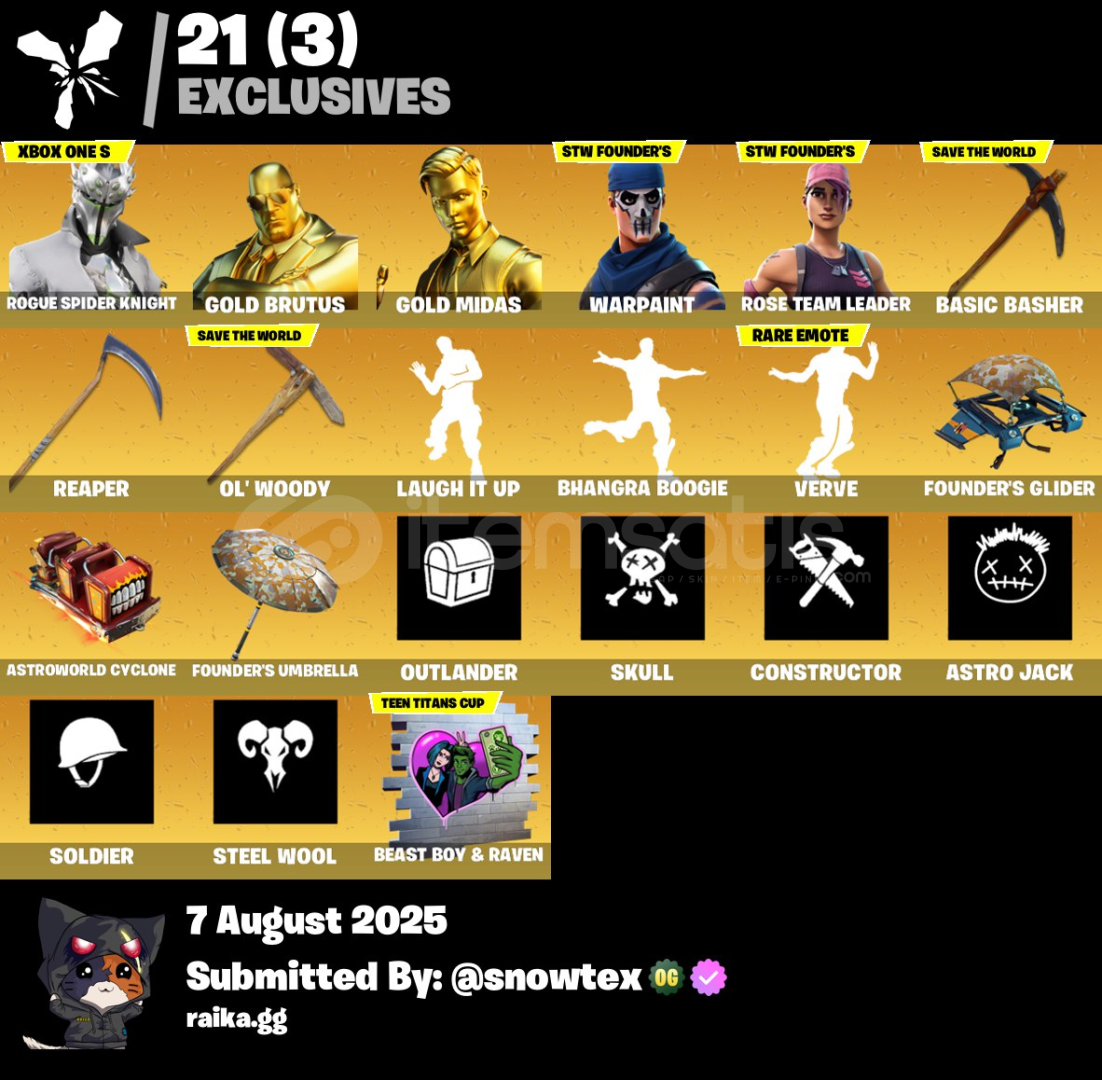 ROGUE SPIDER KNIGHT, LAUGHT İT UP , OG STW . GOLD MIDAS , TRAVİS SCOTT PLANÖRÜ GİBİ NADİR İTEMLER MEVCUTTUR