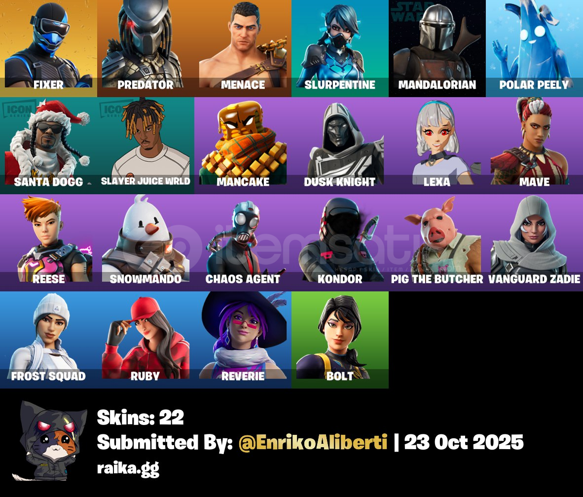 EPİC MAİLLİ + SLURPENTINE + MANDOLARIAN + CHAOS AGENT SKİNLİ -ZOMBİE SHAMBLES EMOTLU HESAP (SON GORULME 1082 GÜN ÖNCE) -HESABIMIZDA OYUNDA NADİR OLAN ZOMBİE SHAMBLES DANSI VE GÜZEL SHOP SKİNLERİ VARDIR HESABIMIZ BÜTÇE DOSTUDUR -OYUNA YENİ BAŞLAYANLAR YADA KENARA ATMAK İCİN SMURF ARAYANLAR İÇİN UYGUNDUR YENİ SAHİBİNE HAYIRLI OLSUN
